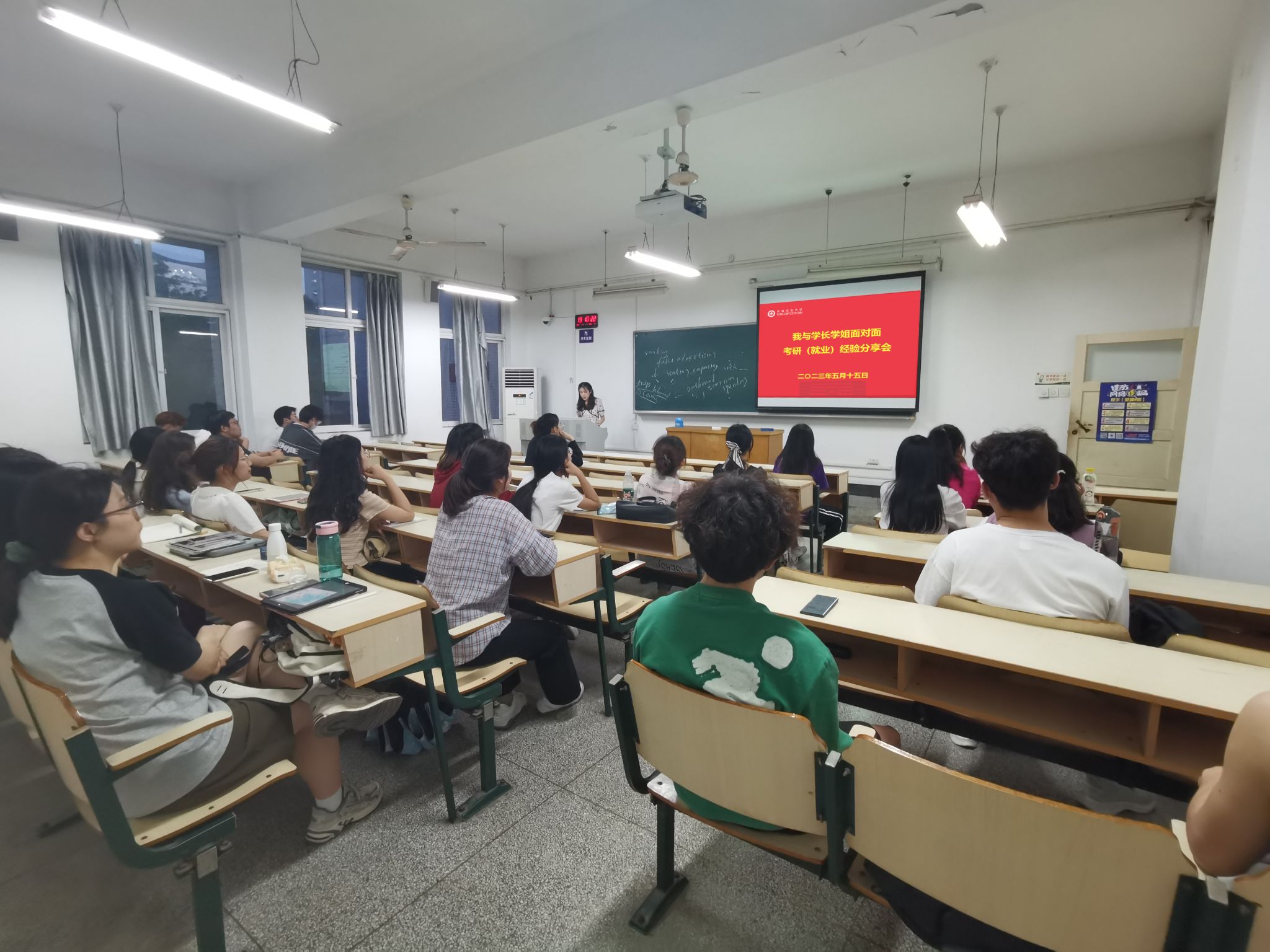 会上,各位学长学姐分别分享了自己的学习(面试)方法、备考(求职)心态、职业发展规划等。他们的分享让在座同学们更加深入地了解考研(求职)的整个过程,以及如何制定合理的学习计划和应试策略。在互动问答环节中,同学们踊跃提问,和学长学姐交流经验和心得,互相鼓励、共同成长,引起了现场的热烈气氛。