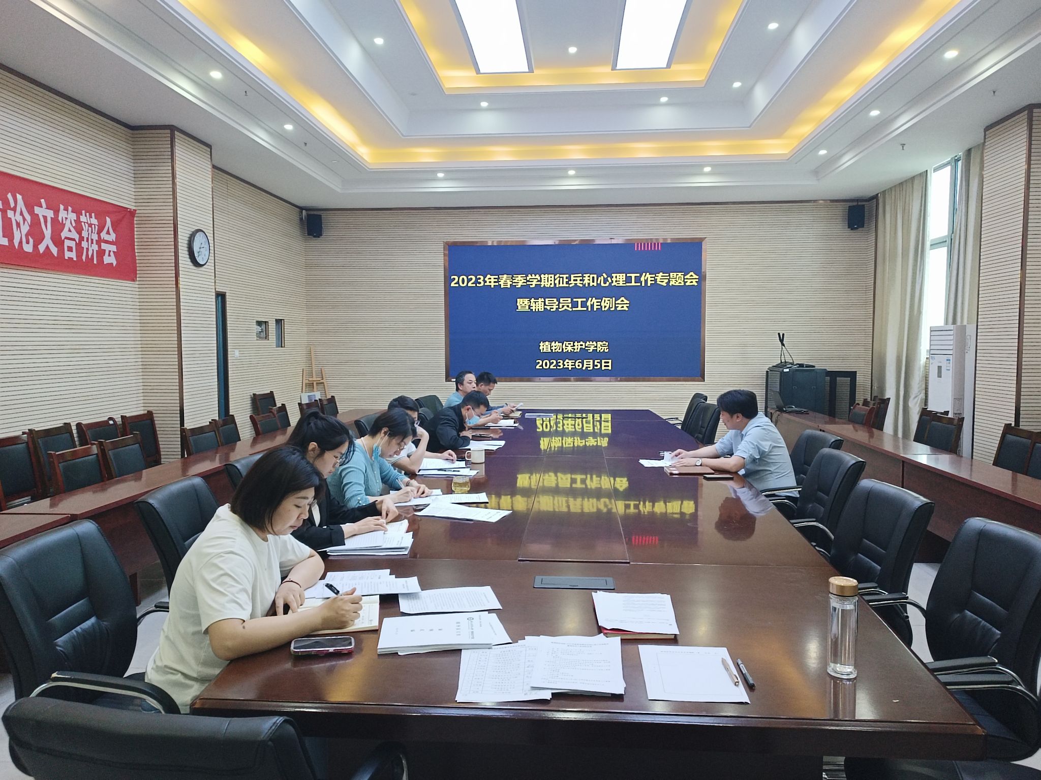 本网讯 6月5日下午,植物保护学院在中西部综合楼1213会议室召开征兵和心理工作专题会暨辅导员工作例会。学院全体专兼职辅导员参加会议,会议由学院党委副书记、纪委书记、副院长汪小强主持。