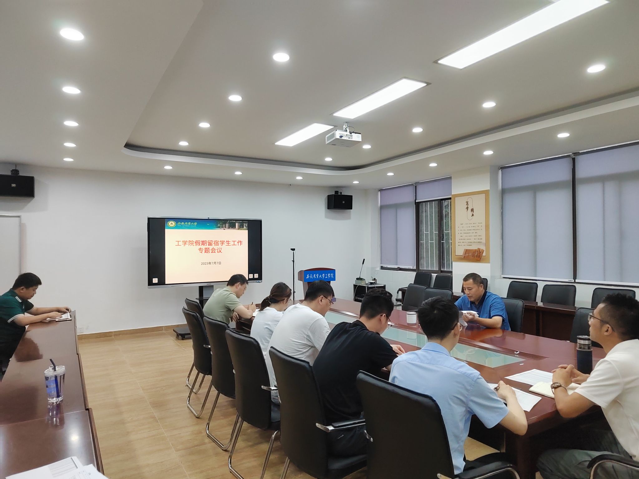 本网讯 为做好暑期留校学生教育管理工作,7月7日上午,工学院在三教二楼会议室召开专题会议。留校学生班级辅导员参加会议,院党委副书记张国学主持会议。