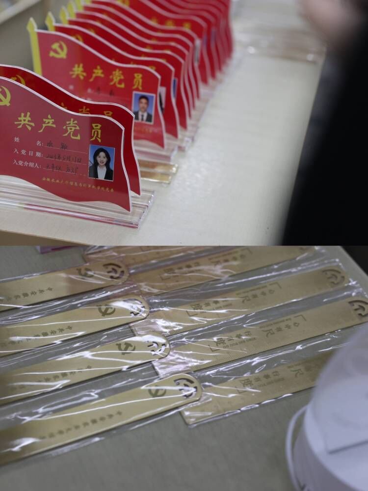 加入党组织是共产党员的一个新的起点。仪式上,学院党委宣读新发展党员名单及按期转正党员名单,正式党员为新发展党员佩戴上了象征着无限荣耀和责任的党徽。同时,为进一步增强党员意识,强化政治认同,坚定理想信念,学院为新发展党员颁发“党员铭牌”和“行为尺”,为按期转正的党员点亮“初心灯”。勉励全体师生党员要牢记身份,争当表率;要履职承诺,遵规守纪;要擦亮底色,锤炼品格。