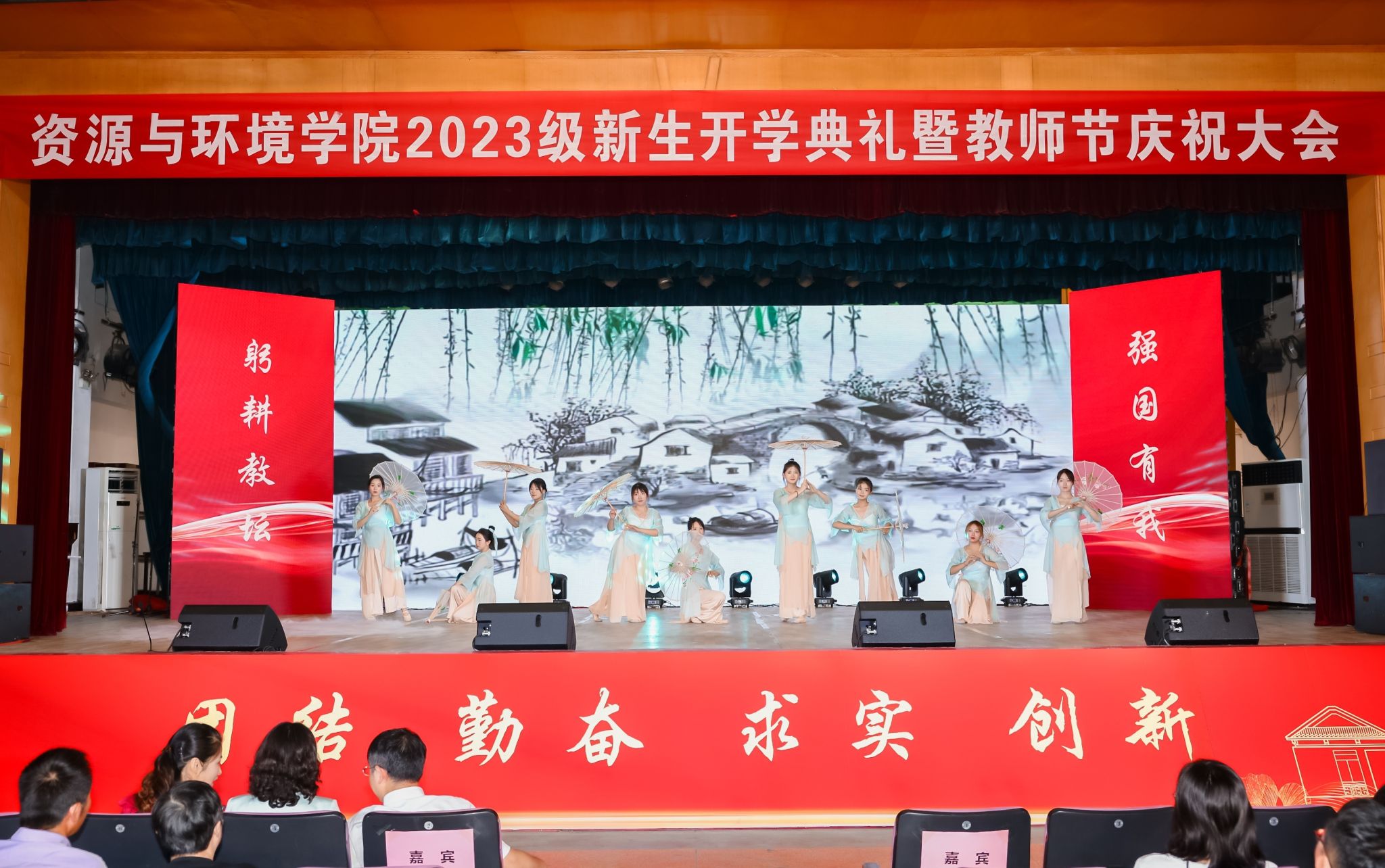 期间,暖场视频《2023迎新花絮快剪》《教师节视频专辑》以及资源与环境学院学生会文艺部和舞蹈队的学生精心编排的歌曲《走,一起去看日出吧》、朗诵《我以我心》、舞蹈《清水河》等文艺表演将喜迎2023级新生与感恩教师的情感展现地淋漓尽致,并为全体教师送上节日祝福。(一审:岳鹏 二审:姚洪章)