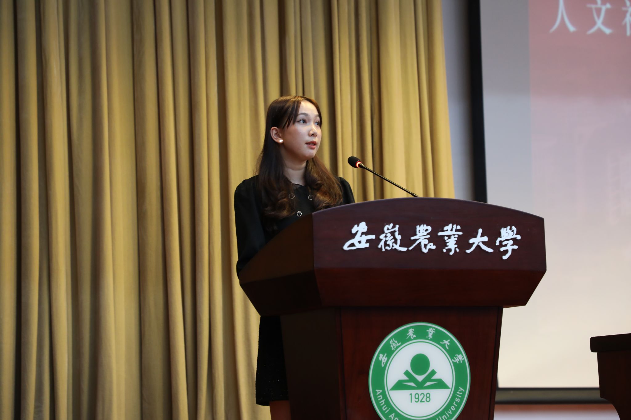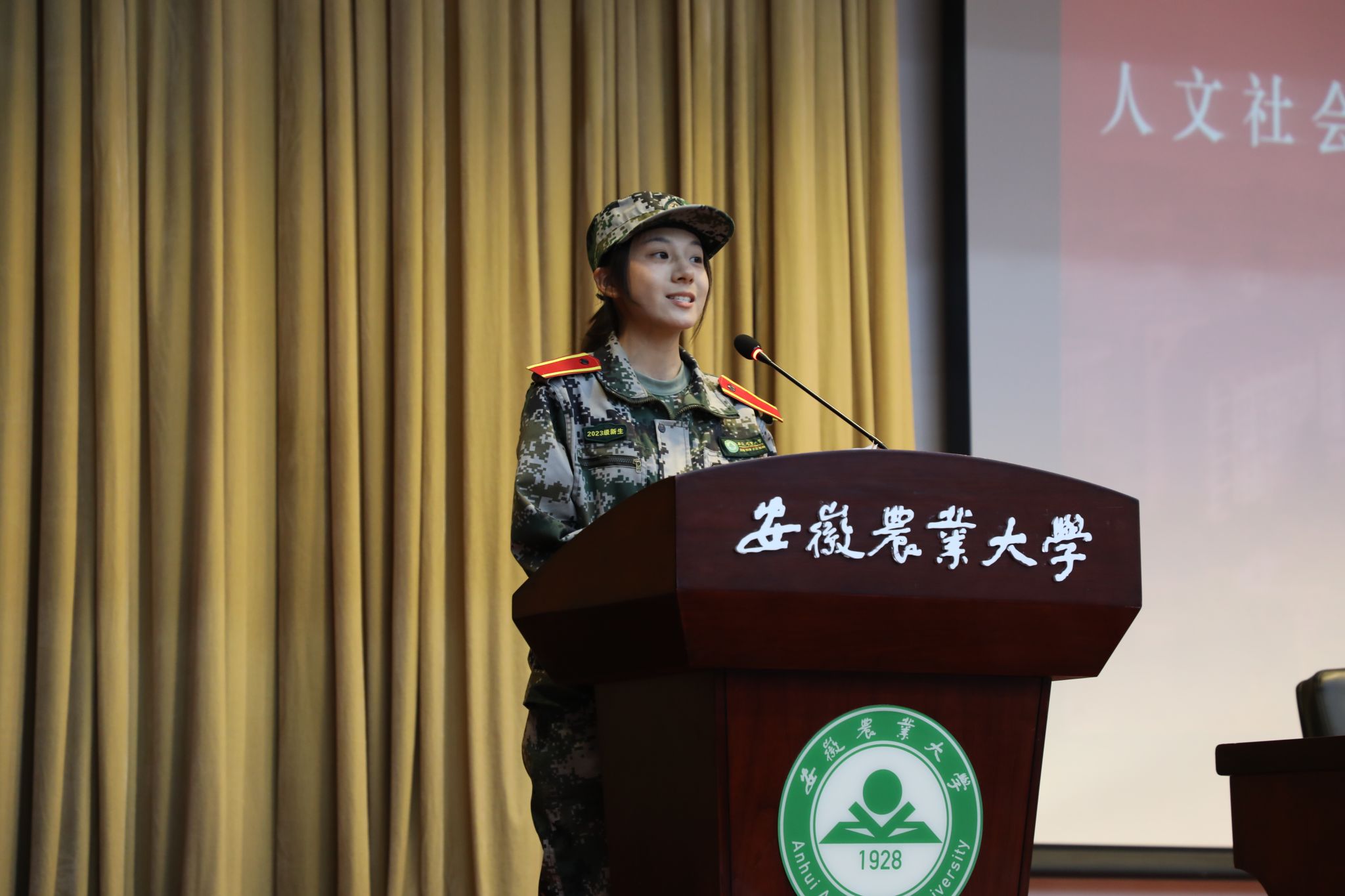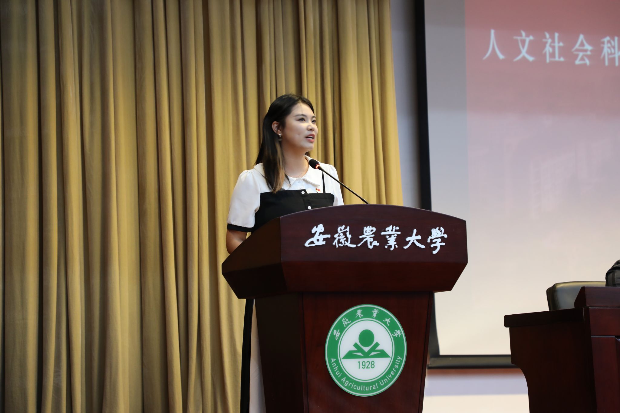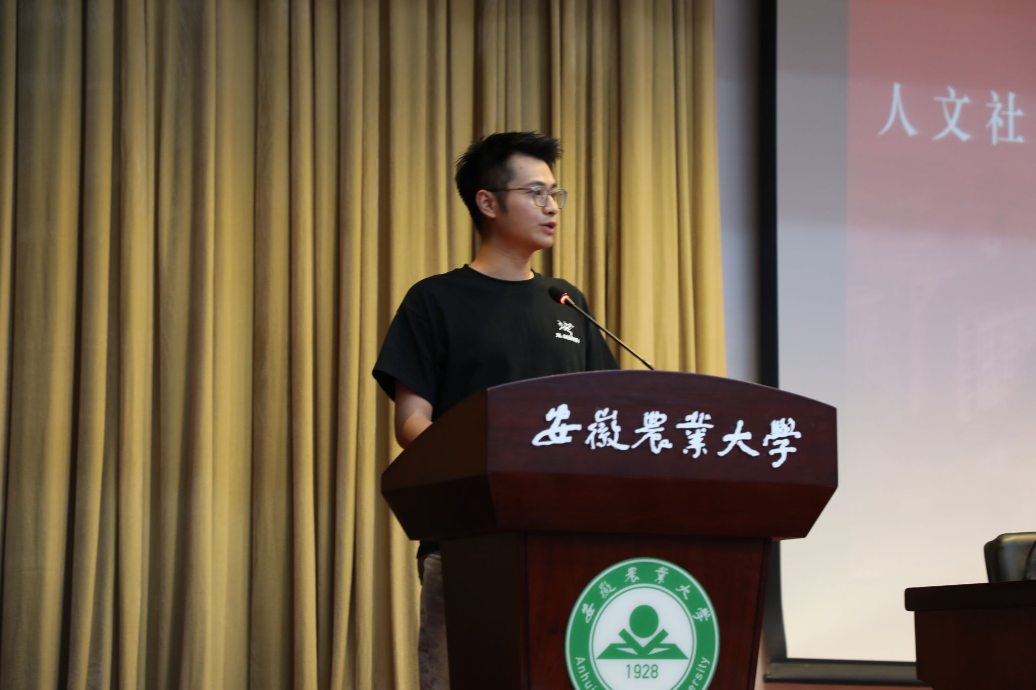 滕瀚解读了大学生行为规范要求。省青教赛一等奖获得者王雪松老师、华商(合肥)律师事务所副主任张帅校友、20级汉语言文学专业本科生刘颖同学、22级农村发展专业研究生陈卓鸿同学、23级法学专业本科新生杨静涵同学、23级社会工作专业国际生新生DALAVONG PAVINA(翁为那)分别发言。