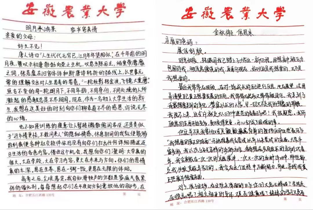 一封家书,遥寄相思;一缕乡愁,满心牵挂。一纸书信翻越千山万水,承载大家的思念与理想。中秋佳节即将到来,学院举办“秋空明月悬 家书抵万金”一封家书感恩教育主题活动,共收到一百余份家书。