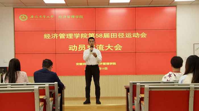 本网讯 在安徽农业大学第58届田径运动会即将到来之际,为进一步调动同学们的参赛热情,激发运动员的参赛斗志,10月11日中午,经济管理学院在经管楼103会议室召开运动会动员交流大会,经济管理学院党委副书记、纪委书记周涛,学院团委老师及全体运动员参加了此次会议。