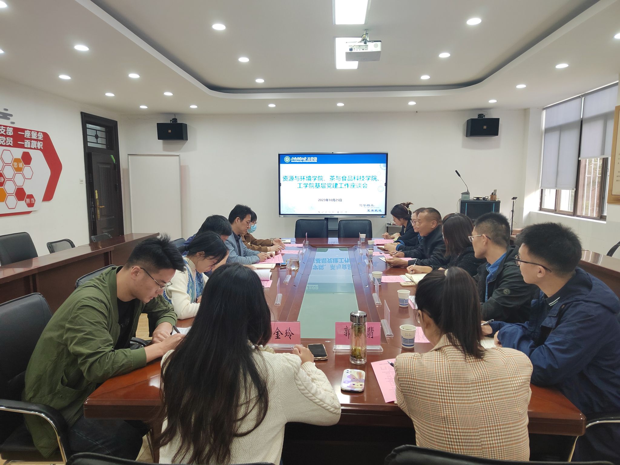 本网讯 为提升党建工作水平,切实把党建优势转换为发展效能,促进学院之间沟通交流。10月25日上午,资源与环境学院党委副书记姚洪章、茶与食品科技学院正科级组织员马静静一行8人来院进行基层党建工作交流,学院办公室人员参加会议,学院副院长张璐主持会议。