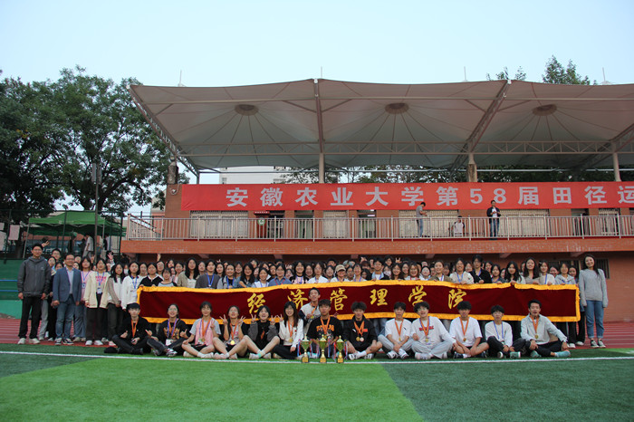 本网讯 10月26日至28日,安徽农业大学第58届田径运动会在学校第一运动场举行,经济管理学院85名学生参加了此次运动会,经过三天的激烈角逐,最终以优异的表现获得男子团体第二名、女子团体第三名、综合团体第二名的好成绩。