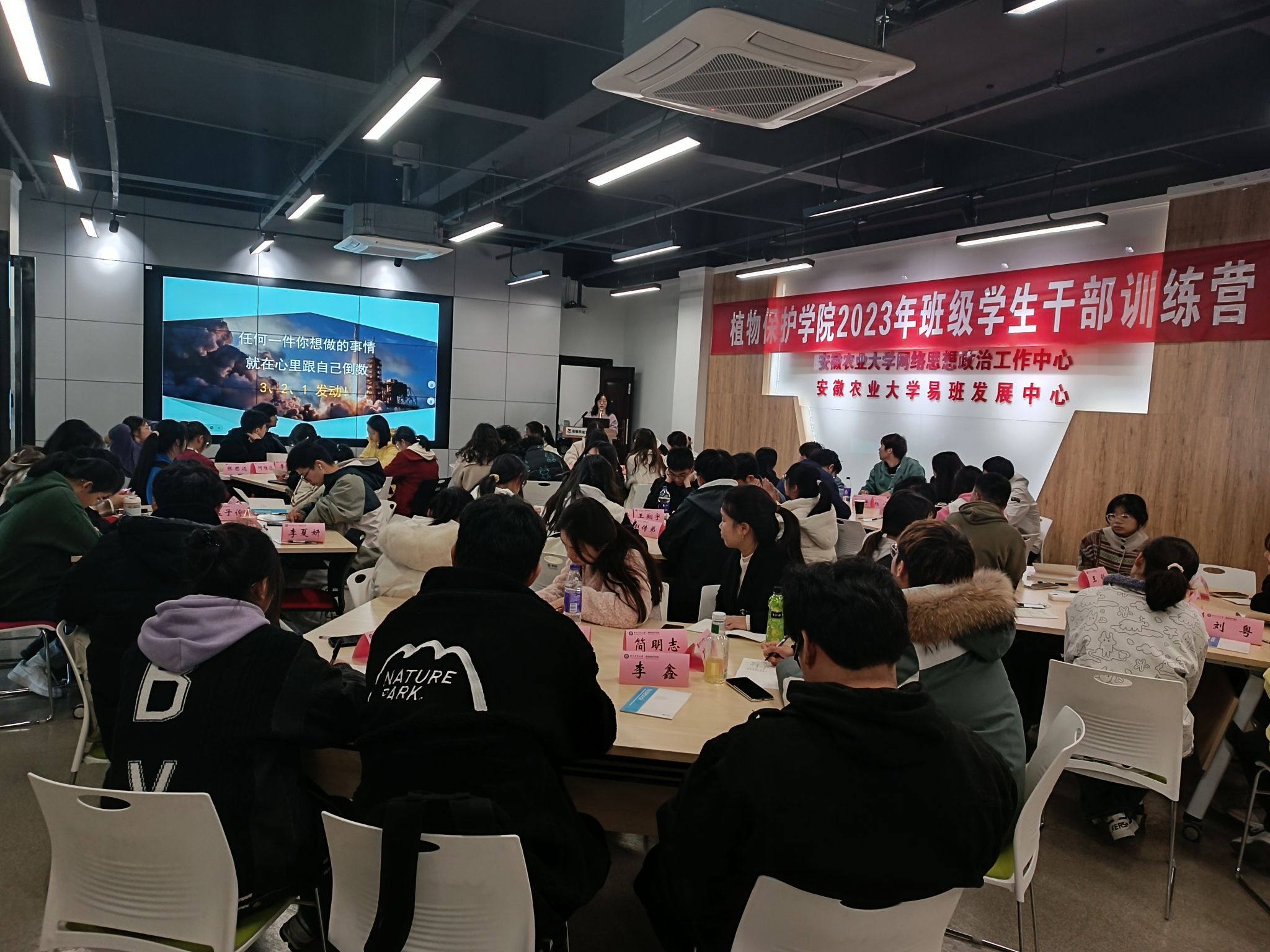 张梦雅老师和裴志远老师就身边的典型人物《榜样力量》和《班级学生干部岗位设置和岗位职责》作了进一步解读和介绍,旨在帮助同学们加强角色转换,清晰角色定位,增强个人履职尽责能力,勉励同学们敢于争先创优,勇于比先进、找差距,通过个人不懈努力,争取为个人、为班级、为学院增光添彩。活动结束后,各班级将在本班中开展训练营,努力发挥传帮带作用,将正能量传递到每位班委中。