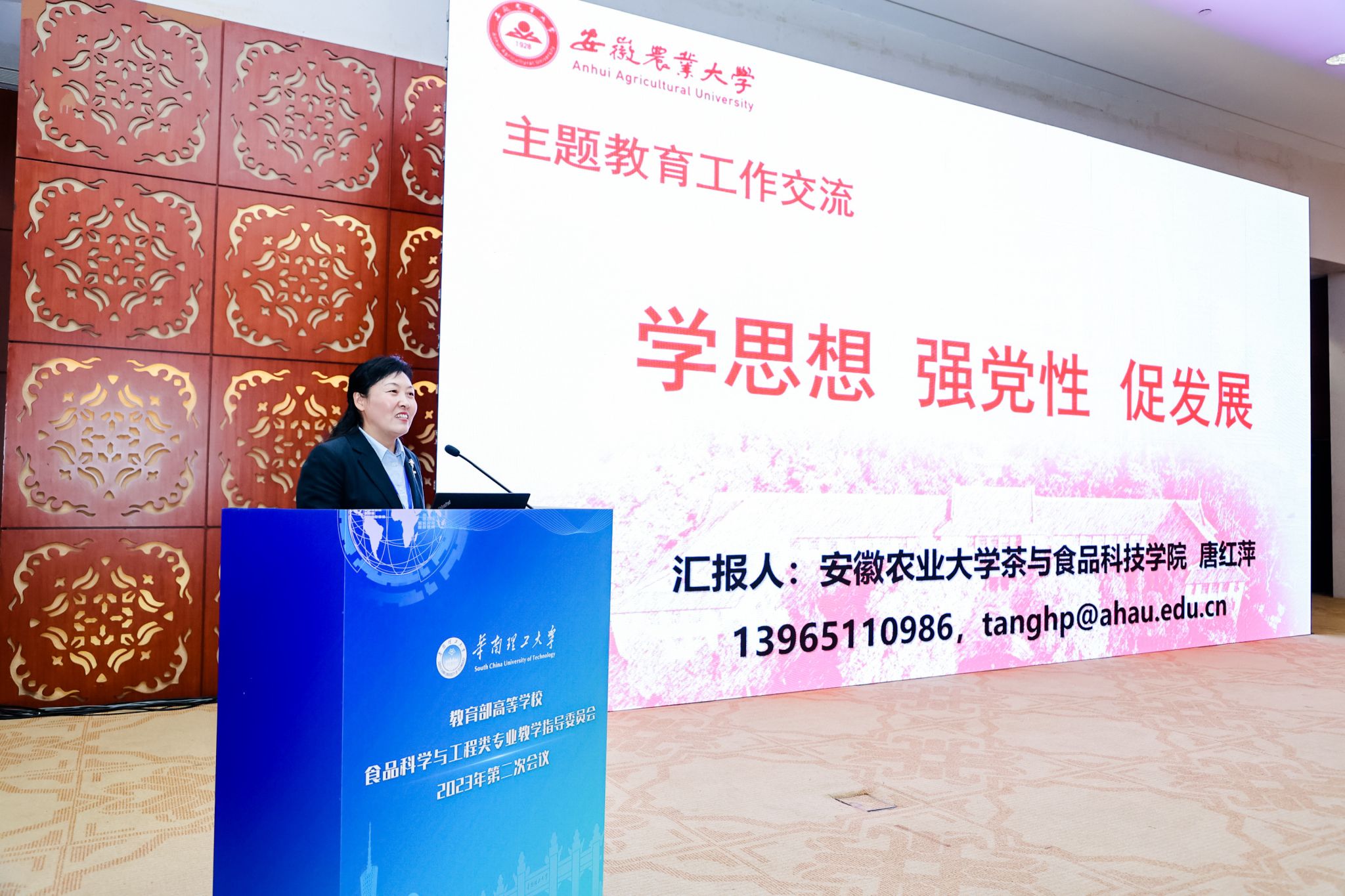 全国高校食品学科党建联盟是在教育部高等学校食品科学与工程类专业教学指导委员会指导下,由全国高校有食品学科的78所高校组成。在全国高校食品学科党建联盟第三次年会暨第三届食品学科党建育人创新论坛上,我院提交的题为《学思想 强党性 促发展》主题教育经验总结和《“三茶融合”基层思想政治工作示范点建设》人才培养与思政建设经验总结,双双入选《教育部高等学校食品科学与工程类专业教学指导委员会2023年第二次会议——党建育人创新分论坛交流材料汇编》。会上,唐红萍书记应邀作了题为《学思想 强党性 促发展》的大会交流报告,她重点分享了学院主题教育开展情况、特色做法和工作成效,与联盟院校进行了充分的交流与讨论。来自华南理工大学、宁波大学、新疆农业大学、大连工业大学、河南科技大学、华中农业大学、江南大学、山西农业大学、上海理工大学、西北农林科技大学、云南农业大学等11所食品学科党建联盟单位代表也作了关于主题教育经验、思政教育特色工作等方面的交流报告。