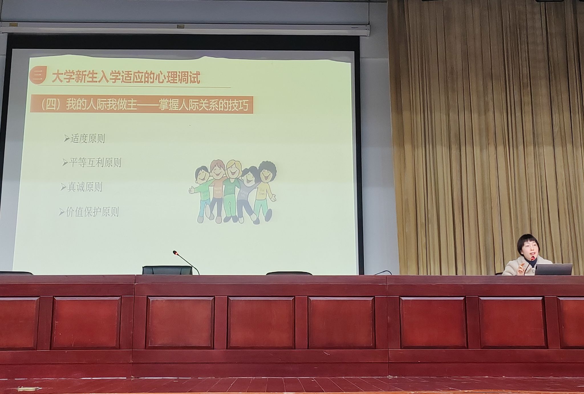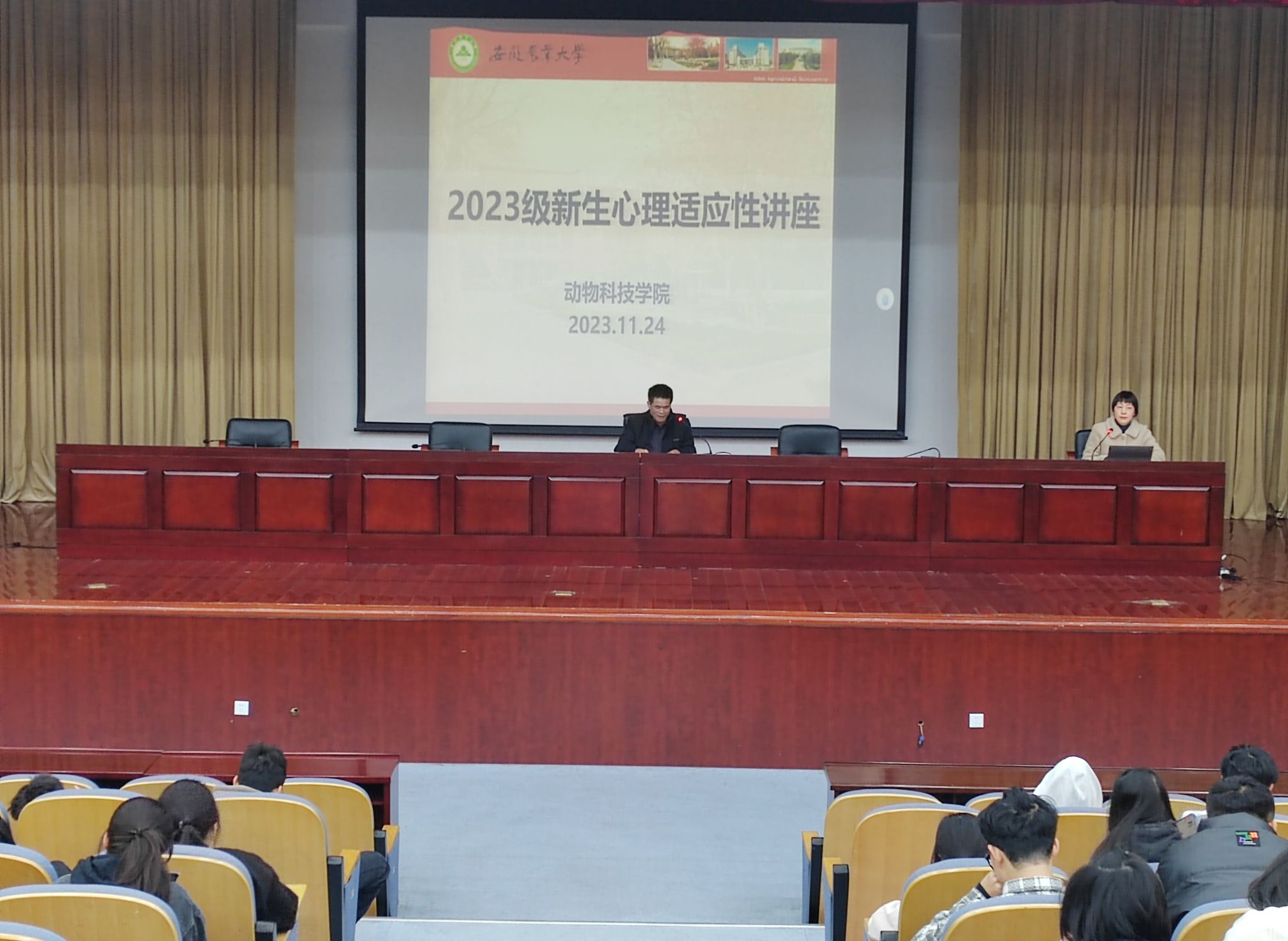 本网讯 为进一步在2023级新生中宣传和普及心理健康知识,帮助新生尽快适应大学生活,11月24日中午,动物科技学院在图书馆第一报告厅举办2023级新生心理适应性讲座。讲座由学校学生心理健康教育与咨询中心老师董丹丹讲授,学院党委副书记章巍主持,学院2023级全体新生参加。