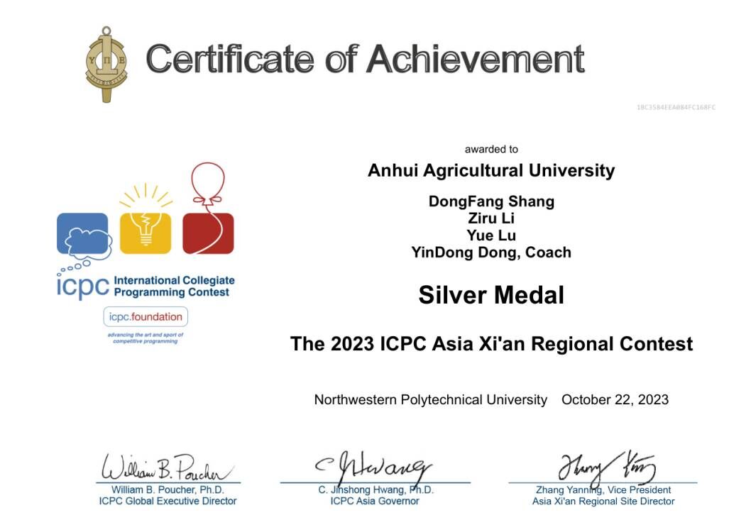 自接到通知以来,在学校的大力支持下,尚东方、李兹如和卢岳三位同学在董寅冬、涂立静两位指导老师的培训、指导下,与清华大学、北京大学、浙江大学、上海交通大学等名校同场竞技,经过5个小时的激烈角逐,从368支正式队伍中脱颖而出,获得银牌。通过比赛,有效培养了学生的计算思维,提升了学生的算法设计和编程能力,发掘了一批对编程感兴趣且能力强的选手,为学院科研创新与专业建设提供了较好的人才积淀,形成了以赛促学、以学促训的良好学习氛围。(作者:董寅冬,一审:孙光旭,二审:饶元)