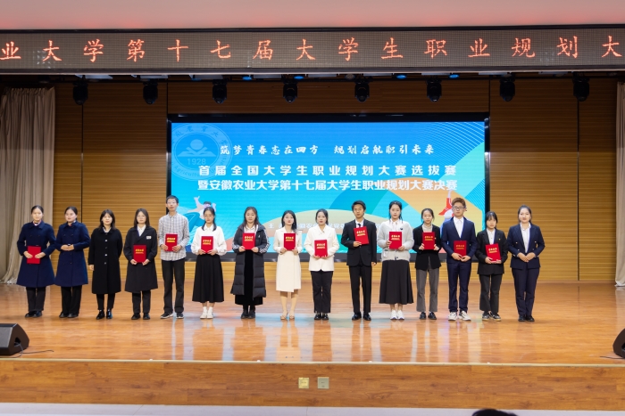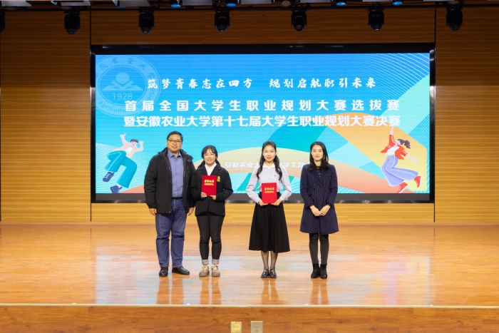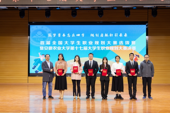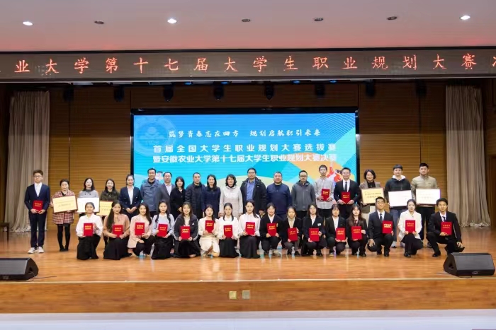 本网讯 11月23日下午,首届全国大学生职业规划大赛选拔赛暨安徽农业大学第十七届大学生职业规划大赛决赛在校欣苑食堂四楼多功能厅拉开帷幕,来自全校各学院的20名选手同场竞技。经过激烈角逐,我院2022级应用经济学刘熙和2021级国际经济与贸易刘宇鑫在就业赛道中排名第一和第五,分别荣获校级一等奖和三等奖,2023级农林经济管理夏继在成长赛道排名第二,荣获校级二等奖,学院获优秀组织奖,刘熙和夏继将代表学校参加首届全国大学生职业规划大赛安徽省赛区比赛,展现我院学子奋进向上、锐意进取的精神风貌。