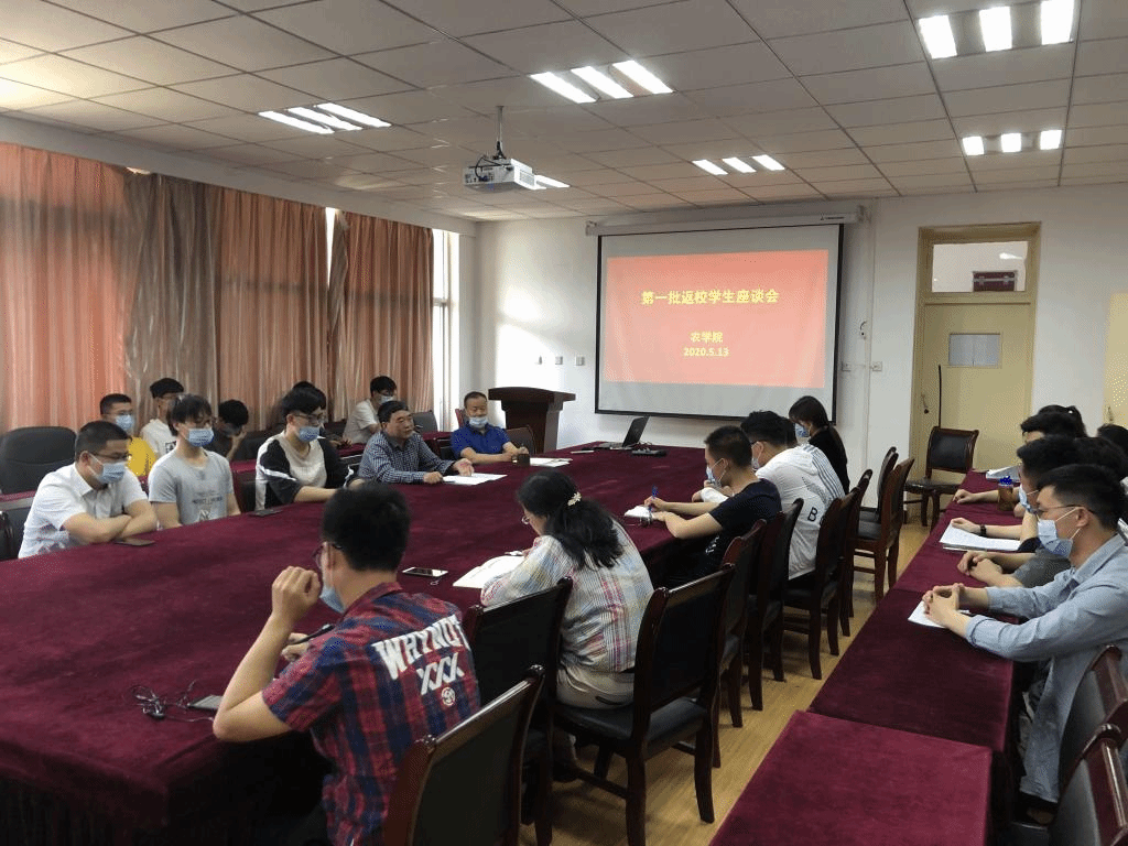 本网讯 5月13日下午15:00,农学院在十教518会议室召开学院第一批返校学生座谈会,院党委书记汪凤莲、院长李金才出席会议。院党委副书记、副院长鄢高翔主持座谈会。