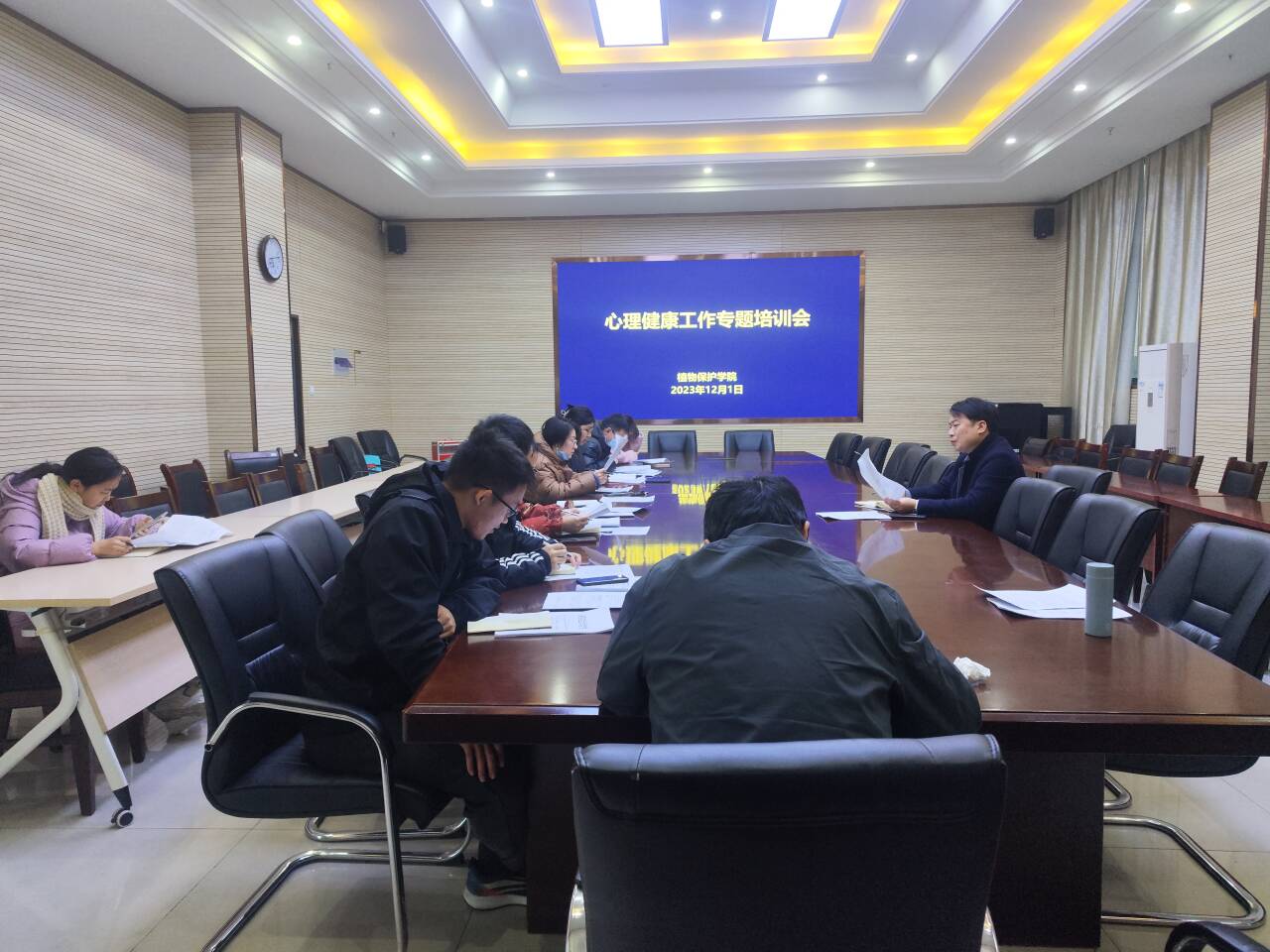 本网讯 12月1日下午,植物保护学院在中西部综合楼1213会议室召开心理健康工作专题培训暨辅导员工作例会,专兼职辅导员参加,会议由学院党委副书记汪小强主持。