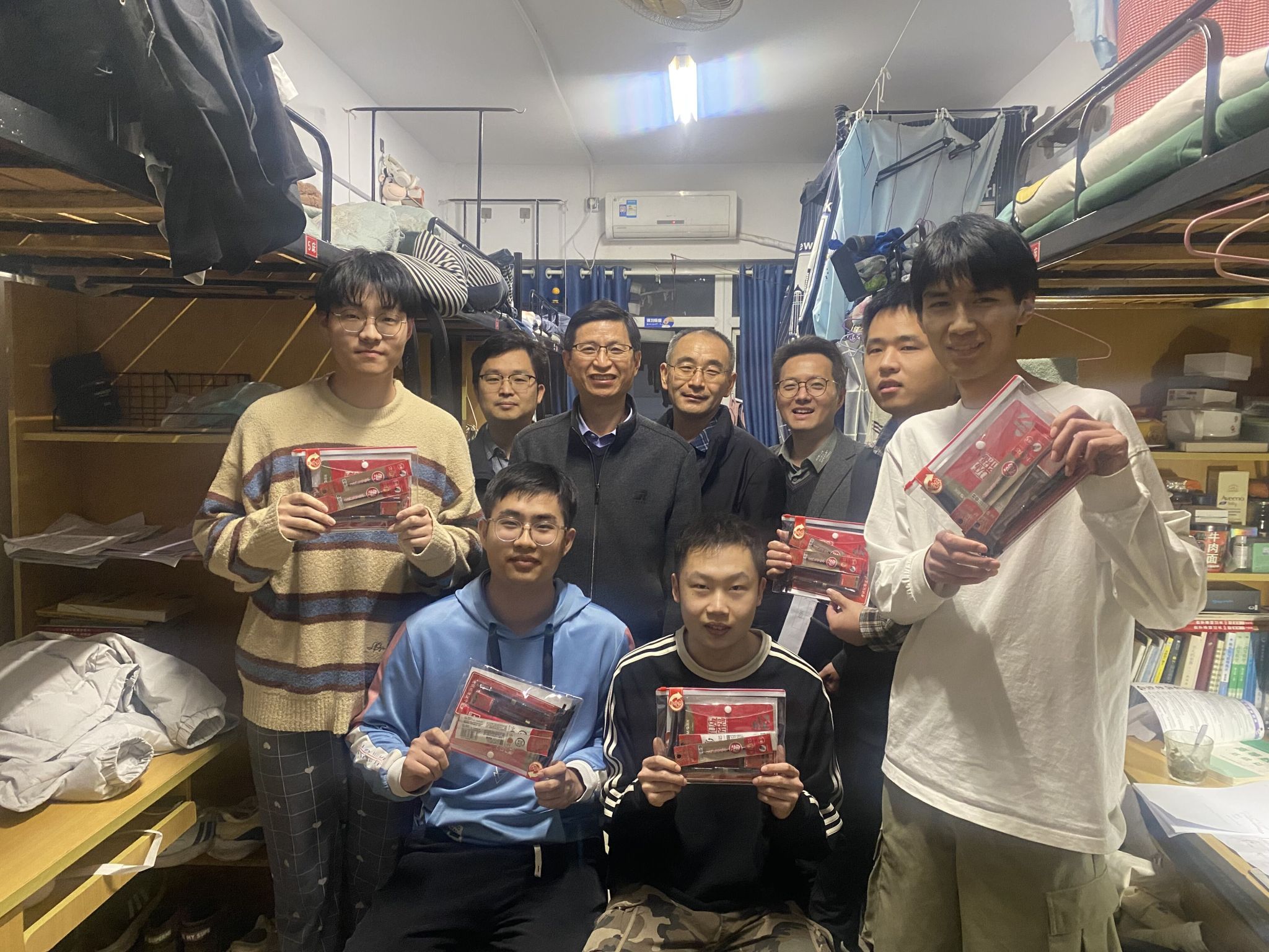 本网讯 为鼓励考研学生凝心聚力,树立信心,做好临考冲刺,缓解备考压力,11月29日下午,工学院党政全体领导班子带领毕业班辅导员深入学生宿舍为工学考研学子送“考研暖心礼包”。