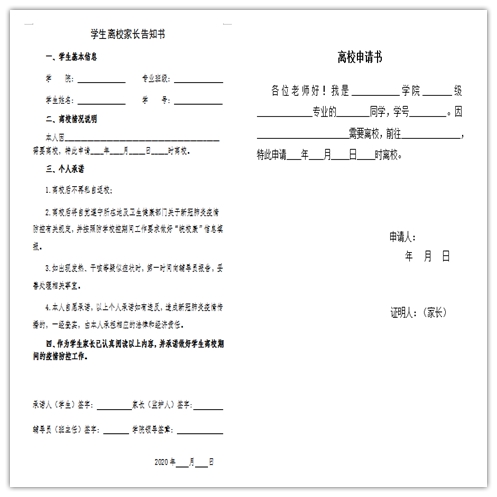 推送张贴九提示,规范程序办理。为进一步给在校学生做好日常服务保障,学院从体温打卡、宿舍日常生活、心理咨询服务、食堂就餐服务、洗浴服务、水银温度计破损处理、图书馆入馆、体育场馆开放、学院紧急联系人等9个方面做出温馨提示;针对在校学生因特殊原因需要离校等情况,发布离校手续办理通知,制定离校申请表、申请书、家长告知书,密切掌握学生离校具体时间、交通工具、去向地和行程路线;毕业班辅导员亲自将离校学生送出校门,要求学生到家报送平安短信,进一步发挥家校协同作用,实现安全管理同频共振。(高寒 通讯员:孙光旭)