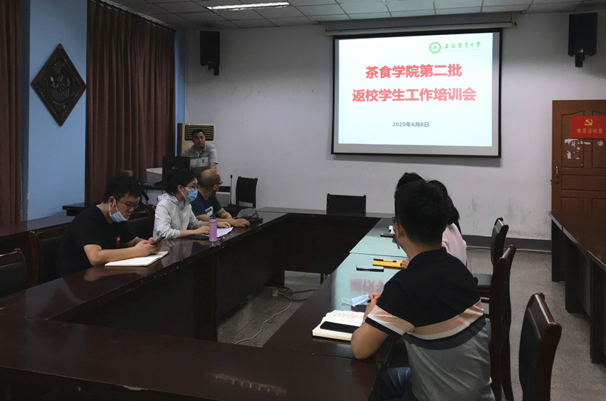 本网讯 6月8日下午,茶与食品科技学院在茶业楼105教室召开第二批返校学生工作培训会,相关专业专兼职辅导员参加培训,会议由学院党委副书记张国学主持。