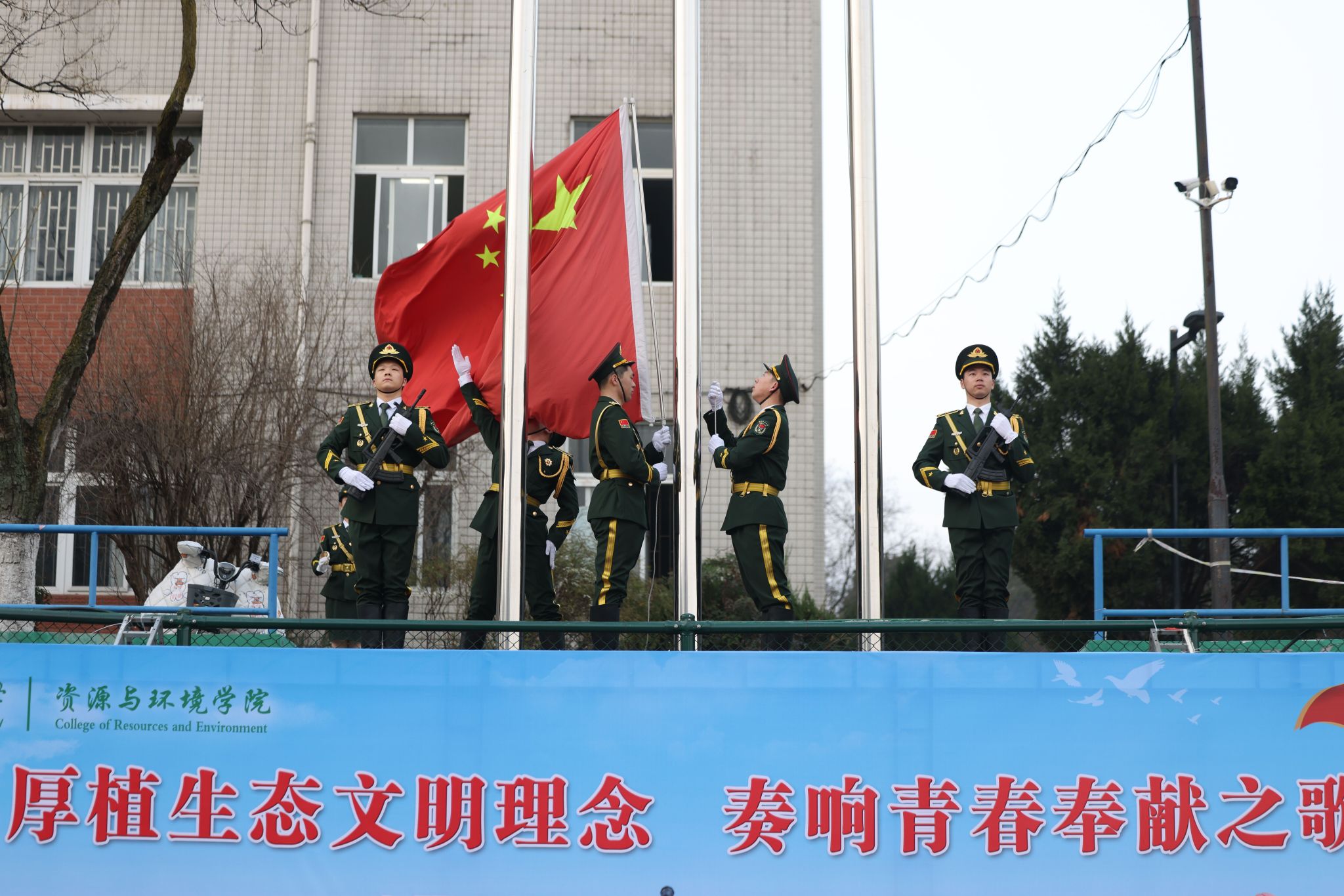 本网讯 3月11日清晨,由资源与环境学院承办的“厚植生态文明理念,奏响青春奉献之歌”主题升旗仪式暨国旗下的公开课在校第一运动场举行,学院党政领导、专兼职辅导员和全体学生参加了活动。