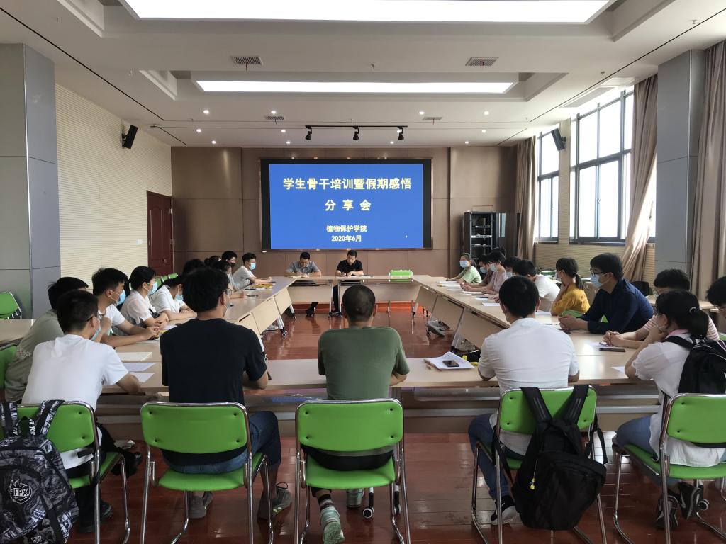 本网讯 6月11日,植物保护学院在中西部大楼1201会议室召开学生骨干培训暨假期感悟分享会。学院党委副书记、副院长、纪委书记戴照力以及各年级辅导员、本科及研究生学生骨干参加会议。