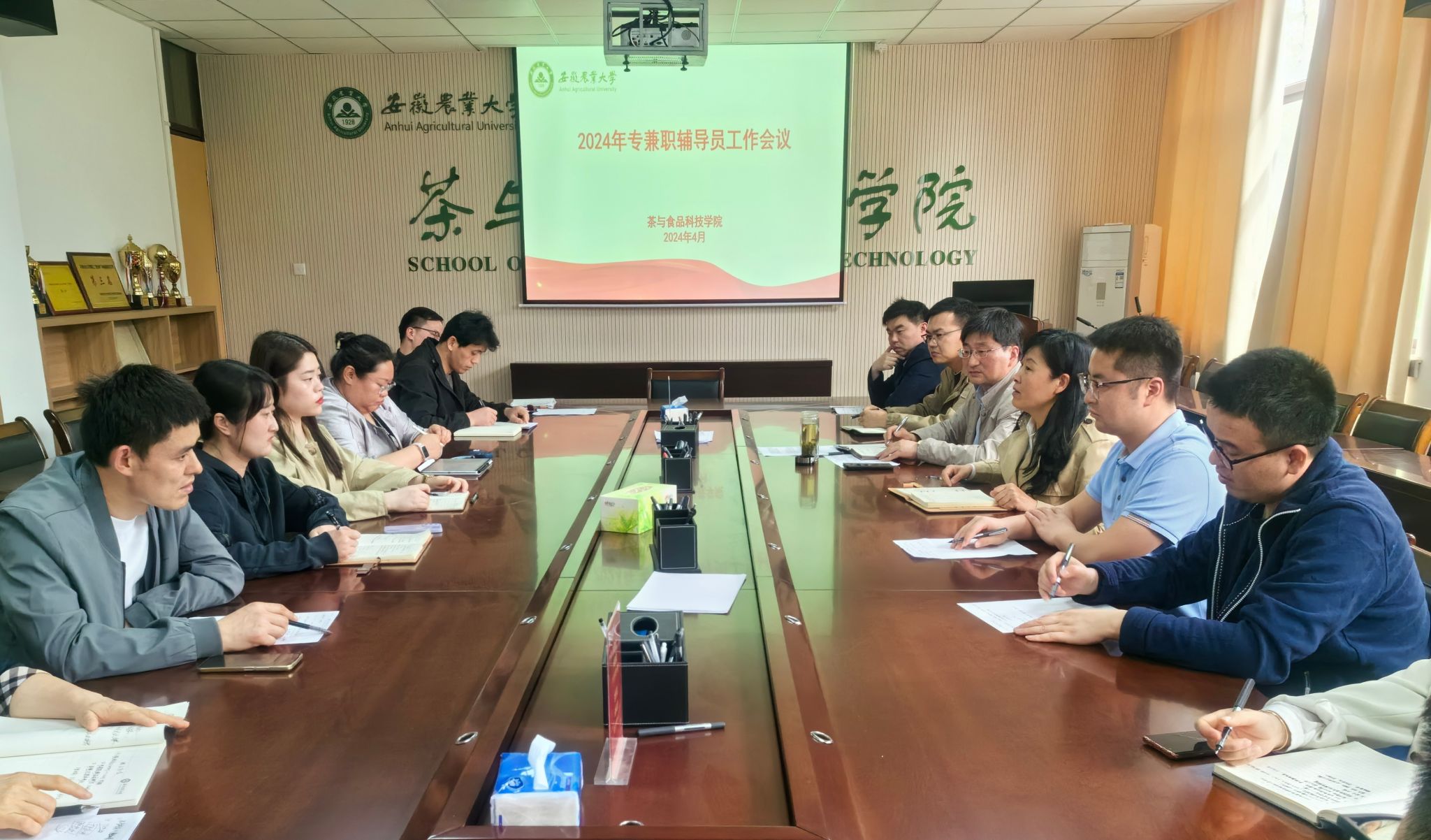 4月1日下午,茶与食品科技学院在茶业楼二楼会议室召开2024年学生工作会议,分析了近期重点学情,并专题研讨了学生护航工作。学院党委书记唐红萍、党委副书记、纪委书记沈周高和全体专兼职辅导员参加会议。沈周高主持了会议。