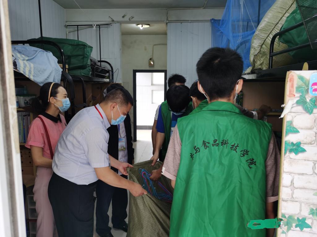 随后,志愿者们分成五个工作组,在老师们的带领下开始将寝室的物品统一打包整理到床铺上。同学们拿上袋子,将衣物、书本、鞋子等物品分别打包,封箱堆垛……忙而不乱、张弛有序。宿舍物品整理是体力活,60多个床位等待整理,炎热的夏天志愿者们满头大汗,但是同学们毫无怨言,依然积极主动,认真对待,奉献自己的爱心,用自己的实际行动展现茶食学子的精神风貌。我们坚信:真情铸就希望,爱心传递温暖。(马静静 通讯员:张宪林)