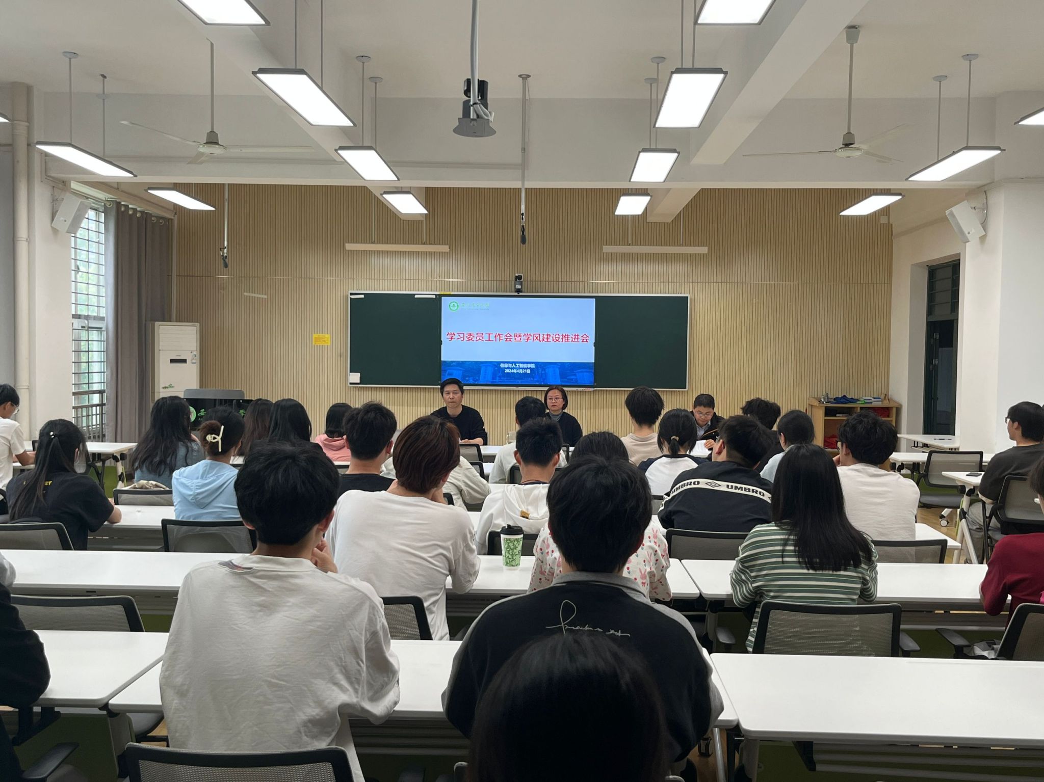 本网讯 4月21日下午,信息与人工智能学院在学院305教室召开2023-2024学年第二学期学习委员工作会暨学风建设推进会。学院副院长张成堂、教学秘书严伟才以及各年级各班学习委员参加会议,会议由学院党委副书记、纪委书记李南飞主持。