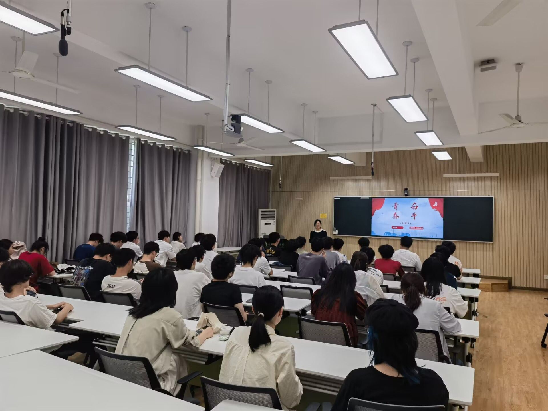 本网讯 5月10日下午,信息与人工智能学院在信智楼305会议举办“英模·大师进思政课堂”专题报告。“安徽省五一劳动奖章”“安徽省劳动竞赛先进个人”“安徽省青年教学名师”等荣誉获得者,信息与人工智能学院应用数学系副教授樊冬梅老师为师生们带来“青春·奋斗”的专题报告。来自我院部分入党积极分子、新发展团员及师生代表共100余人聆听报告。院党委副书记、纪委书记李南飞出席。