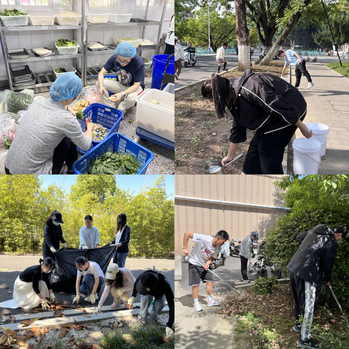 学院组织开展了形式多样的志愿服务活动,扮靓环境,美化校园。5月8日至12日,学院各学生党支部党员志愿者带头行动,组织支部党员开展垃圾捡拾、杂草清除、维护人文“养”吧,充分体现了大学生党员服务集体、勇于担当的精神风貌。5月10日,学院还组织11名本科学生在西苑食堂开展“劳动教育进食堂 体验校园好‘食’光”活动,创新劳动教育形式,丰富劳动教育内容,让学生在为志愿服务的过程中体会到劳动的意义和价值。