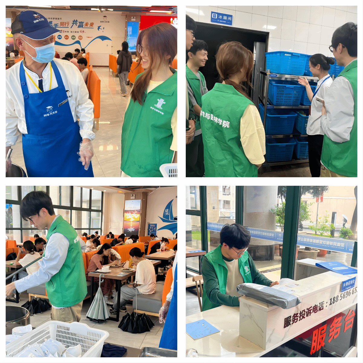 组织同学亲身参与食堂验菜、宿舍楼管、绿化养护等后勤保障岗位的劳动过程,充分发挥学生干部吃苦在前的示范引领作用。在与食堂工作人员的交流中,同学们了解了他们的具体工作,惊异于他们日常工作的琐碎与复杂,更加理解了他们工作的辛苦。“一粥一饭当思来之不易”,通过此次食堂劳动体验活动,不仅增强了同学们的食品安全意识,弘扬了勤俭节约的美德,更让同学们深刻地体会到了食堂工作的辛苦和责任,对于形成“尊重劳动,尊重粮食”的勤俭节约的优良作风具有重要作用。