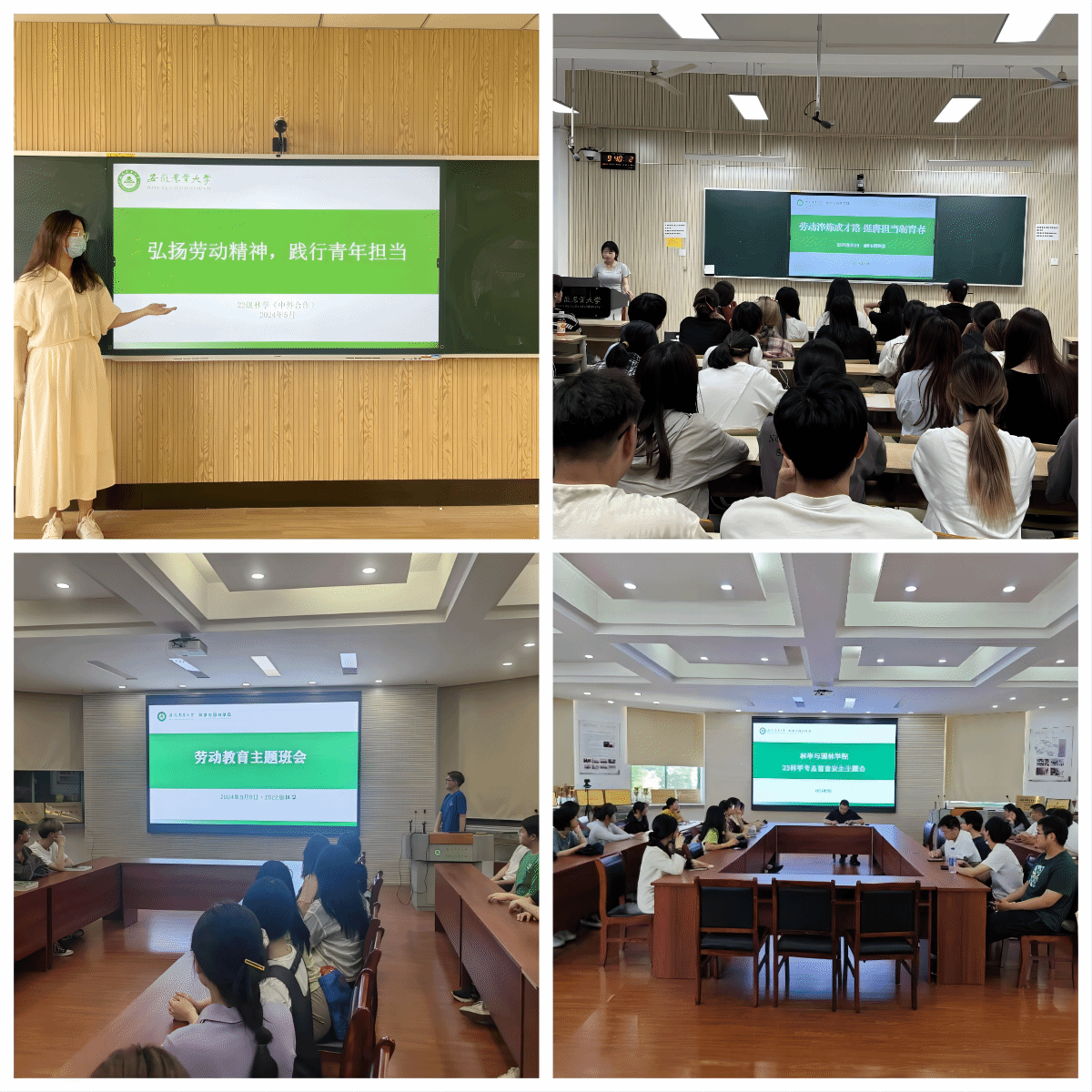 劳动教育周期间,学院要求各年级以班级为单位开展“劳动淬炼成才路 挺膺担当砺青春”主题班会,累计召开30余场次。学习宣传习近平总书记五四青年节对广大青年寄语精神、关于开展爱国卫生运动重要指示精神以及关于劳模精神、劳动精神、工匠精神的重要论述,通过故事分享、视频学习、案例讲解等形式,帮助同学们理解新时代劳动精神的实质内涵,倡导形成“劳动光荣,技能宝贵,创造伟大”的时代风尚。