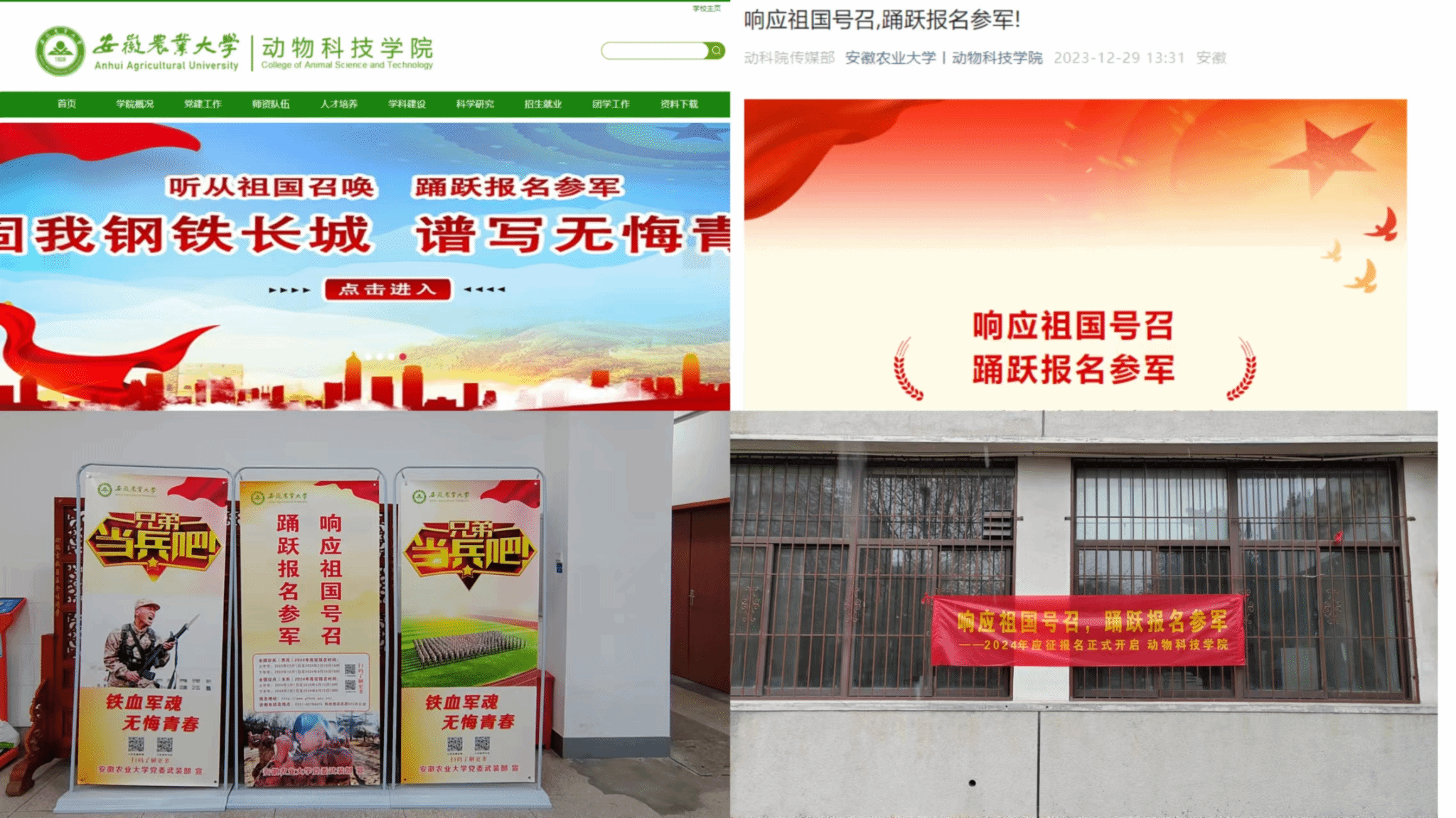 借助平台,加强宣传。学院充分利用微信公众号、学院官方网站等平台,推送关于征兵政策的微信推文、设置征兵宣传专题栏,面向2024届应届毕业生详细介绍应征入伍的条件、报名方式、优惠政策等,为学生们提供全面、准确的信息。同时,在学院楼宇前悬挂横幅、在一楼大厅贴海报,营造浓厚征兵氛围。