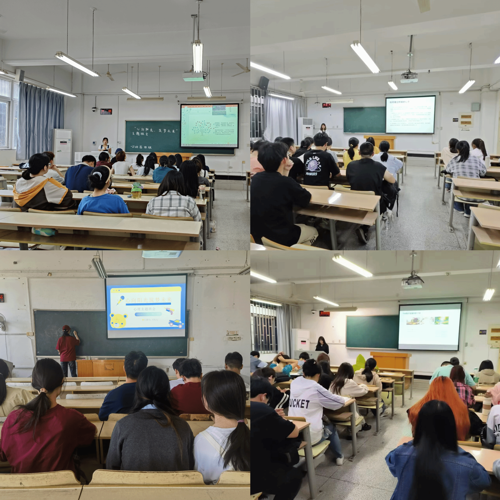 本网讯 为进一步开展学院心理健康教育工作,宣传和普及心理健康知识,5月上旬开始,学院共组织41个本科班级开展了以“心向阳光,筑梦未来”为主题的班会活动。
