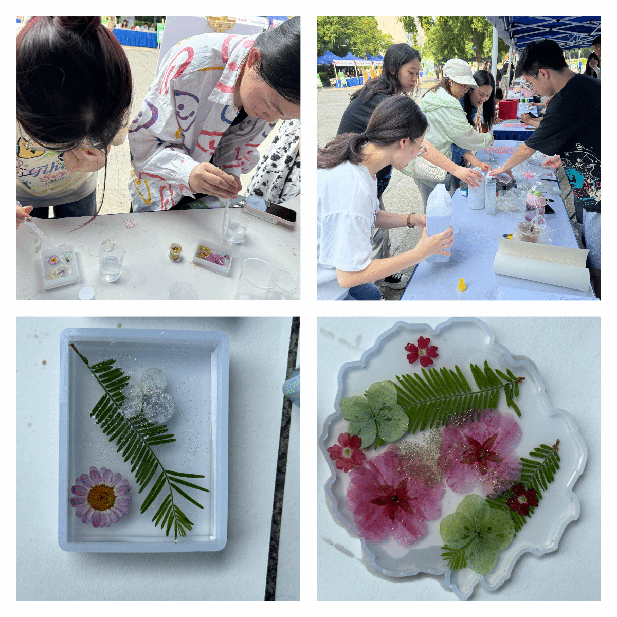 “心灵绘彩,滴胶凝韵”干花滴胶制作。坚持滴胶是一种既能保存植物又能防止其被外界破坏,以十分美观的方式保持植物表面清洁的技术,用滴胶封印干花,留住美好。本次活动不仅提高了同学们动手能力,也引导其释放内心的压力。