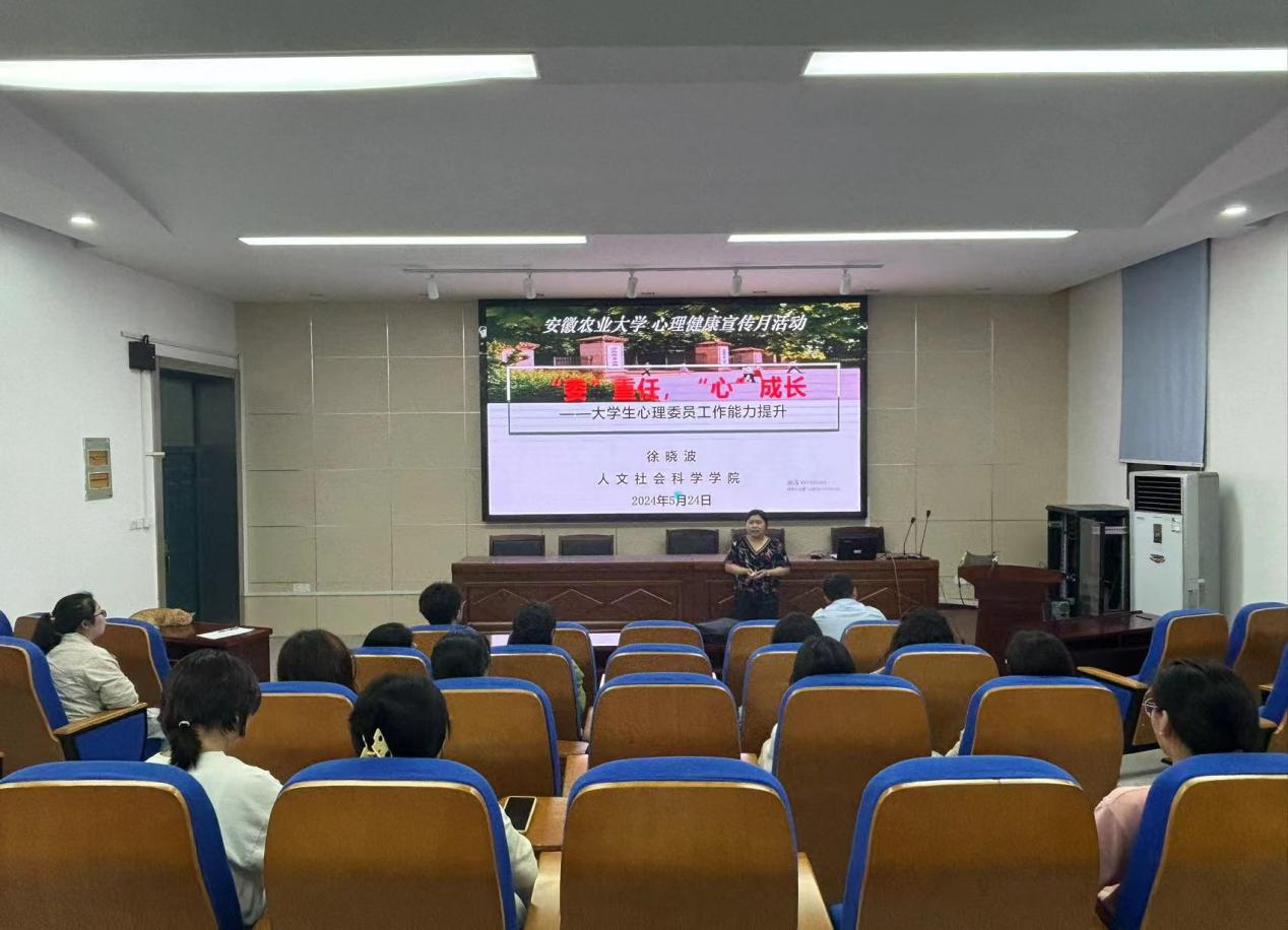5月24日,学院在二教326会议室举办心理委员座谈会。国家二级心理咨询师、人文与社会科学学院徐晓波副教授应邀作报告,本科生和研究生各班级心理委员参加会议。徐晓波副教授围绕心理委员的角色地位、角色职责、角色素养以及工作方法等四个方面给各班心理委员开展了一场别开生面的培训学习会。本次心理委员座谈会加强了心理委员之间的联系,有利于提高心理委员对心理问题发现与排查能力,有助于学院更好地开展心理健康教育工作。