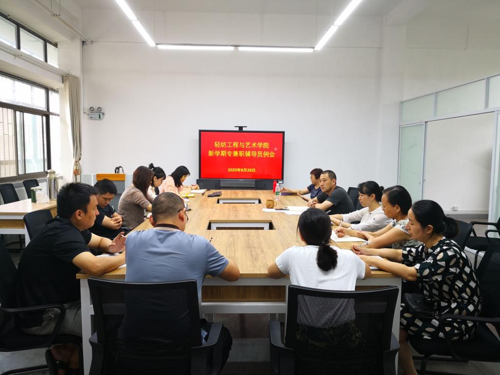 本网讯 8月28日上午,轻纺工程与艺术学院在轻纺楼3A09会议室召开新学期专兼职辅导员工作会议,全体专兼职辅导员参会。会议由院党委副书记、副院长吕剑秋主持。