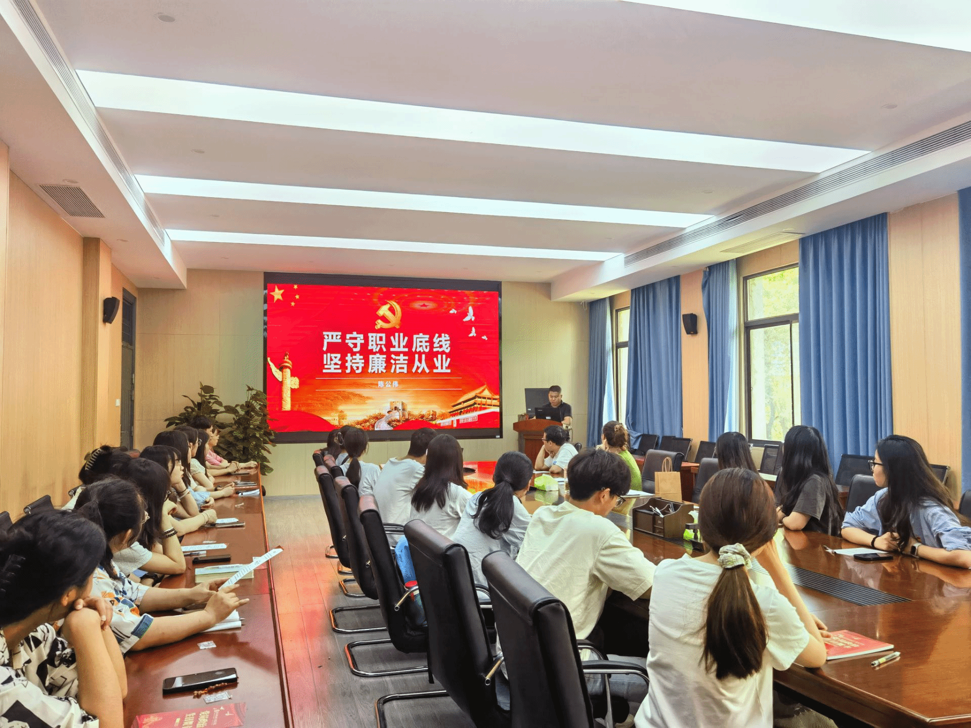 开展一次党纪教育,严守廉洁底线。学院纪委书记陈公伟为毕业生党员讲授“严守职业底线,坚持廉洁从业”专题党课。他结合典型案例,向毕业生党员们讲述了全面从严治党和反腐败斗争的重要意义,引导毕业生党员在今后的生活工作中带头做到学纪、知纪、守纪,知敬畏、存戒惧、守底线,把“廉洁从业”作为永恒课题和终身课题。