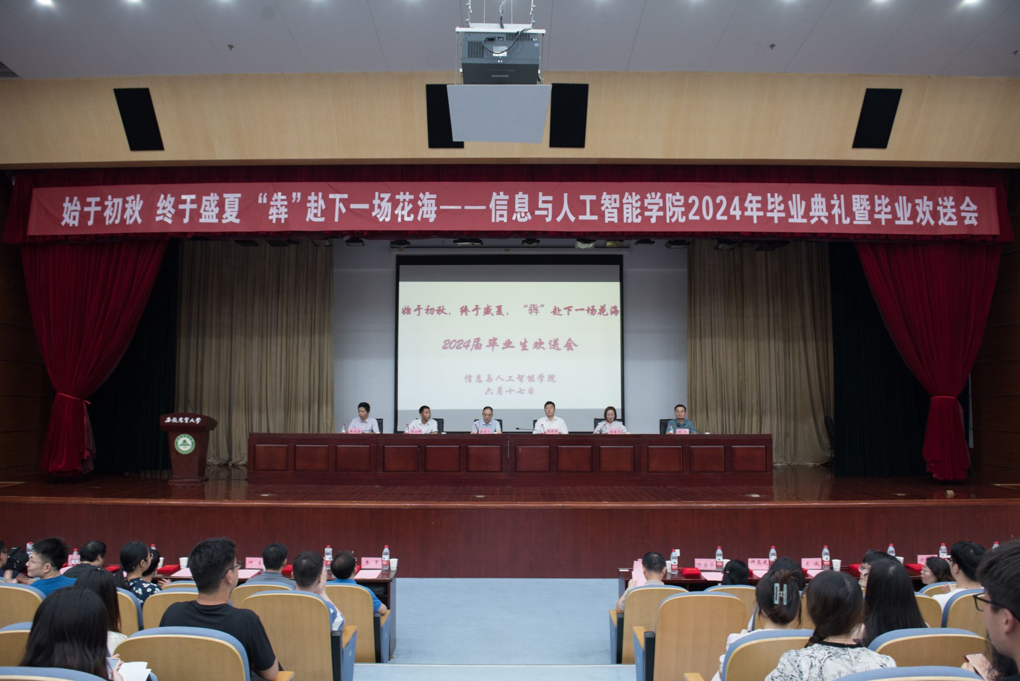 本网讯 6月17日上午,信息与人工智能学院在图书馆第一报告厅举办2024年毕业典礼暨毕业欢送会。学院党政领导,各系部负责人、教师代表、党政办公室人员、毕业班辅导员、毕业生代表和家长代表等参加典礼。学院党委副书记李南飞主持典礼。
