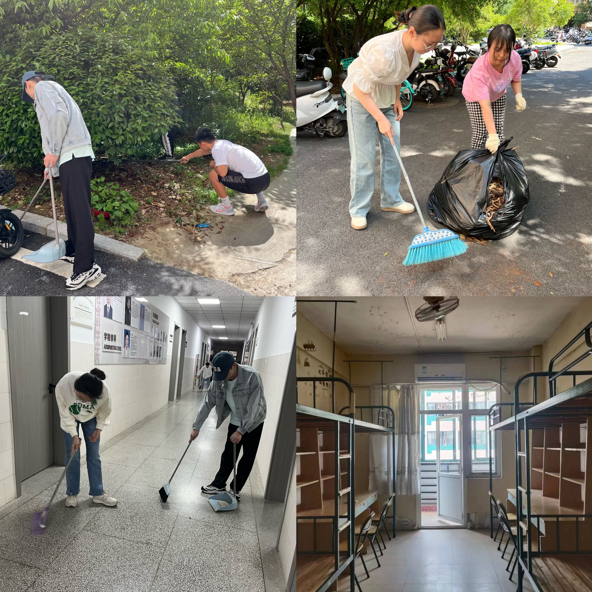 以劳健心,为青春续航。5月9日,学院组织毕业生党员在人文楼周边开展除草,扫地,浇花等系列劳动活动,体现支部党员的吃苦耐劳精神,在劳动中展示奉献精神,为美化校园环境贡献自己的力量。6月18日-20日,组织毕业生开展“最后一次寝室大扫除“文明离校活动,营造了良好的寝室文化氛围,展现人文学子良好精神风貌。