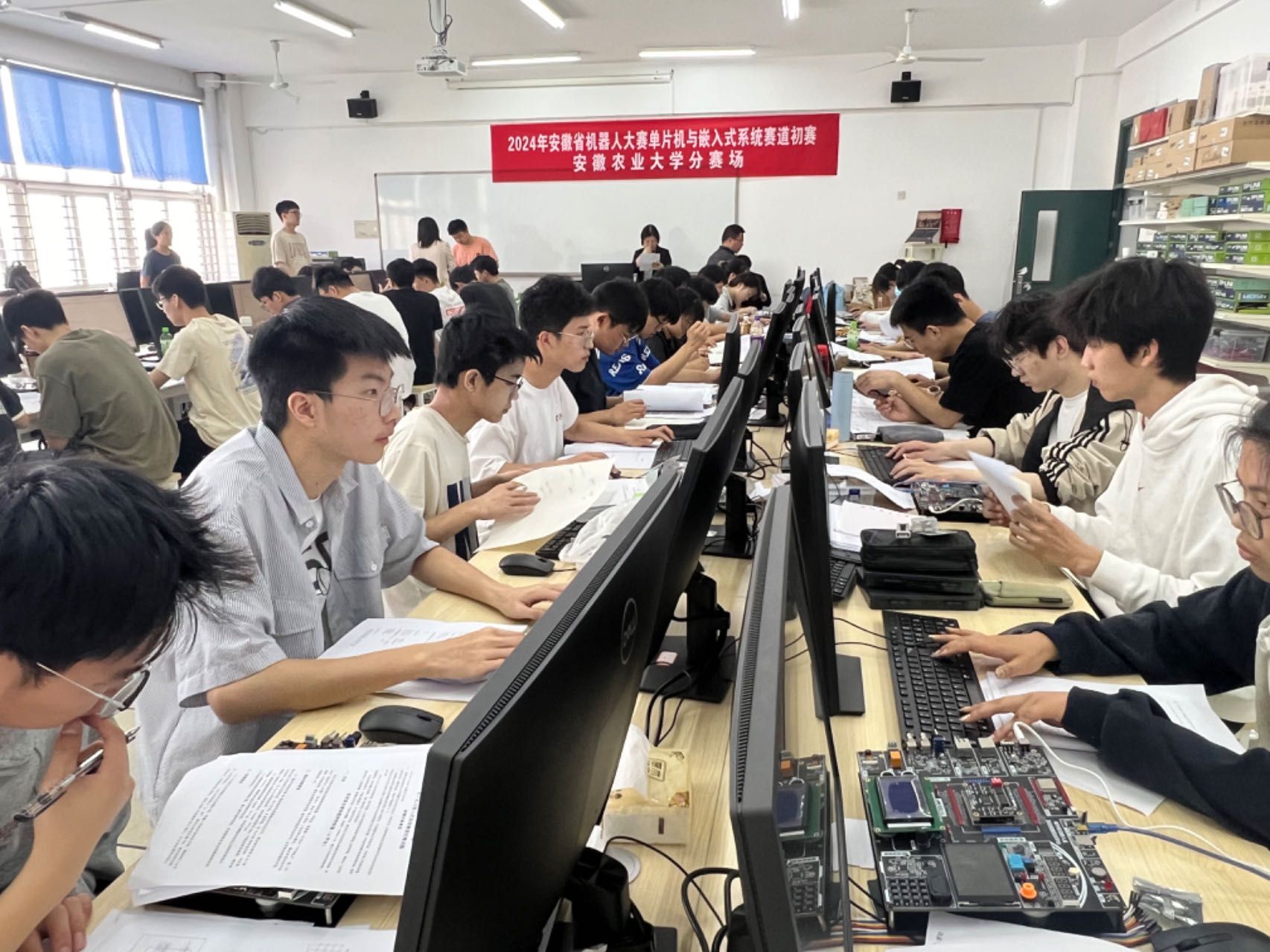 据悉,安徽省机器人大赛单片机与嵌入式系统赛道比赛是由安徽省教育厅主办的面向安徽省大学生的科技活动,目的在于激励学生学习微处理器技术和嵌入式系统的积极性,提高学生运用微处理器技术解决实际问题的综合能力,推动大学微处理器与嵌入式系统教学体系、教学内容和方法的改革。本年度比赛共有来自合肥工业大学、安徽大学等省内55所高校,741支队伍,1482名学生参赛。