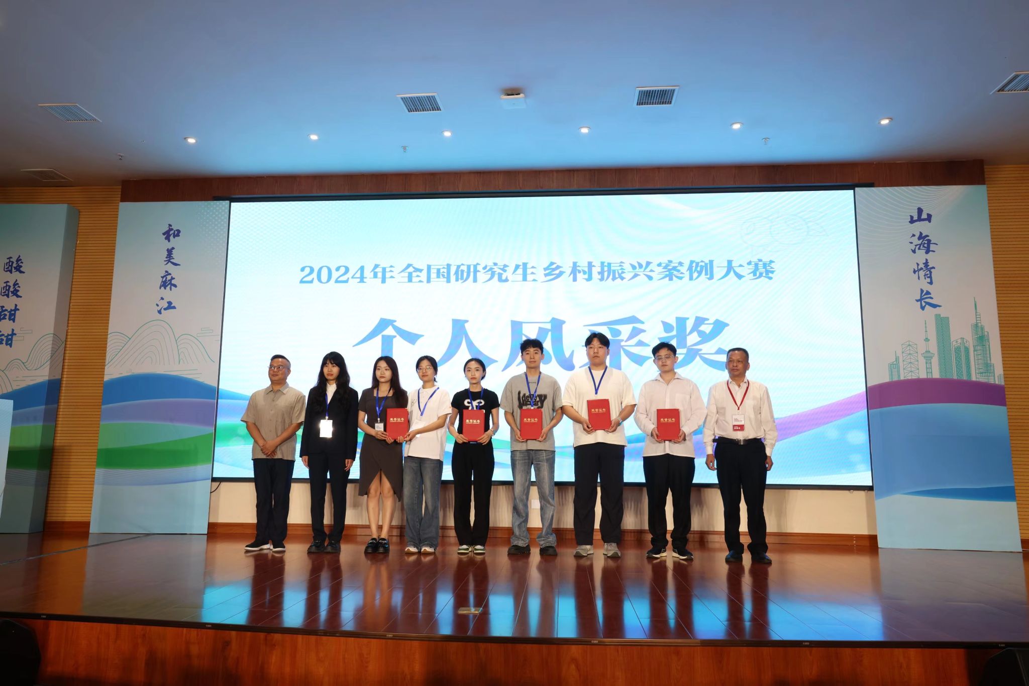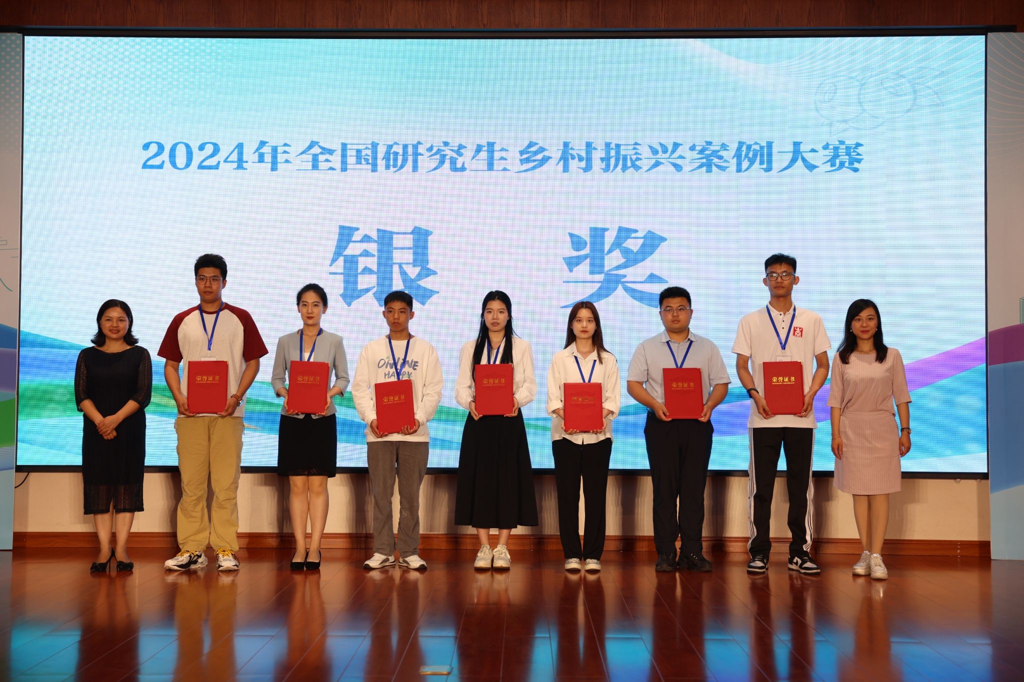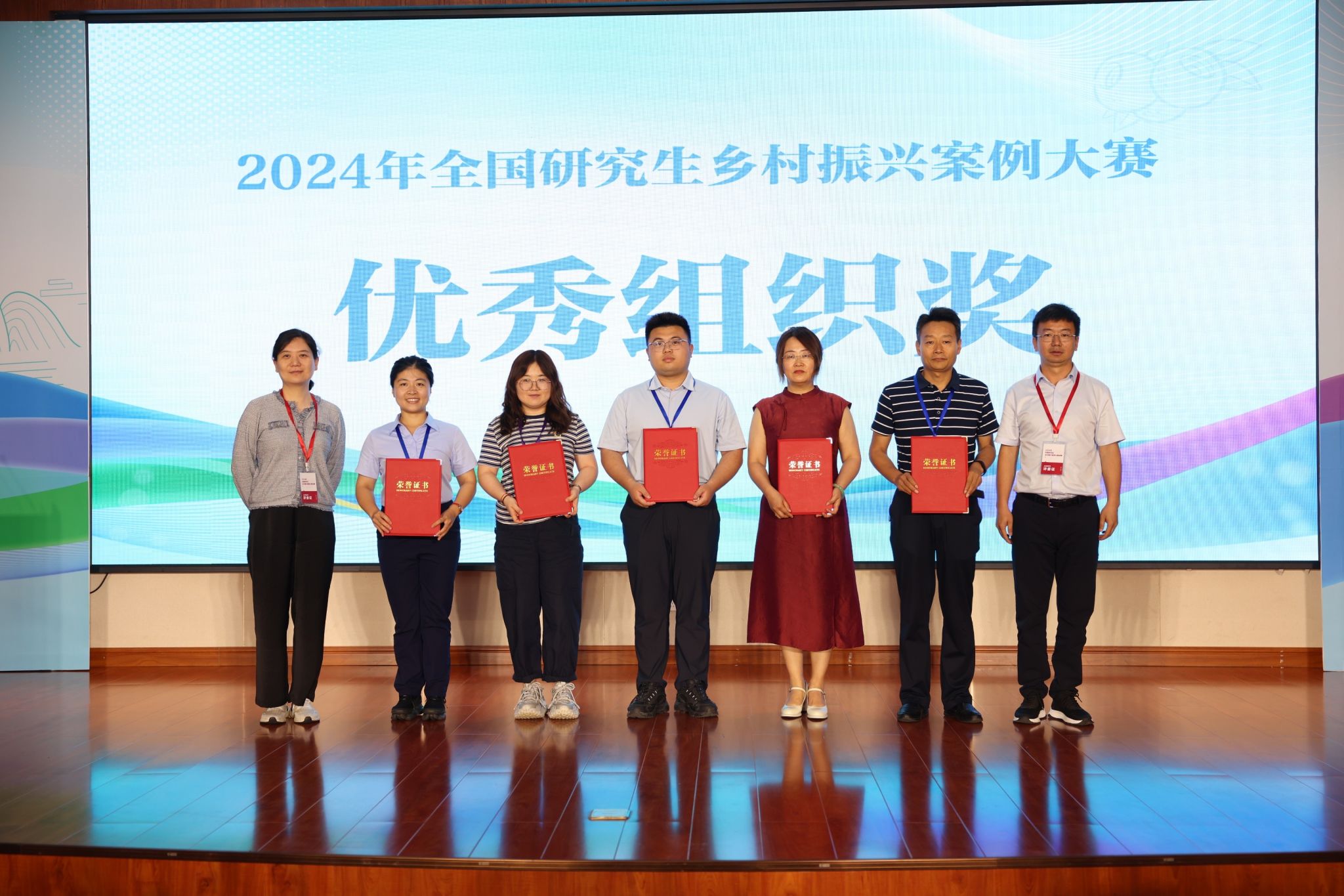 本网讯 6月21日上午,2024年全国研究生乡村振兴案例大赛在贵州省麻江县落幕,由经济管理学院研究生邢凯、陆丹丹、蒋伟、刘小琦、吴菲菲、赵斯雅组成的马“稻”成功团队在比赛中斩获银奖,学校荣获“优秀组织奖”,研究生蒋伟荣获“个人风采奖”。