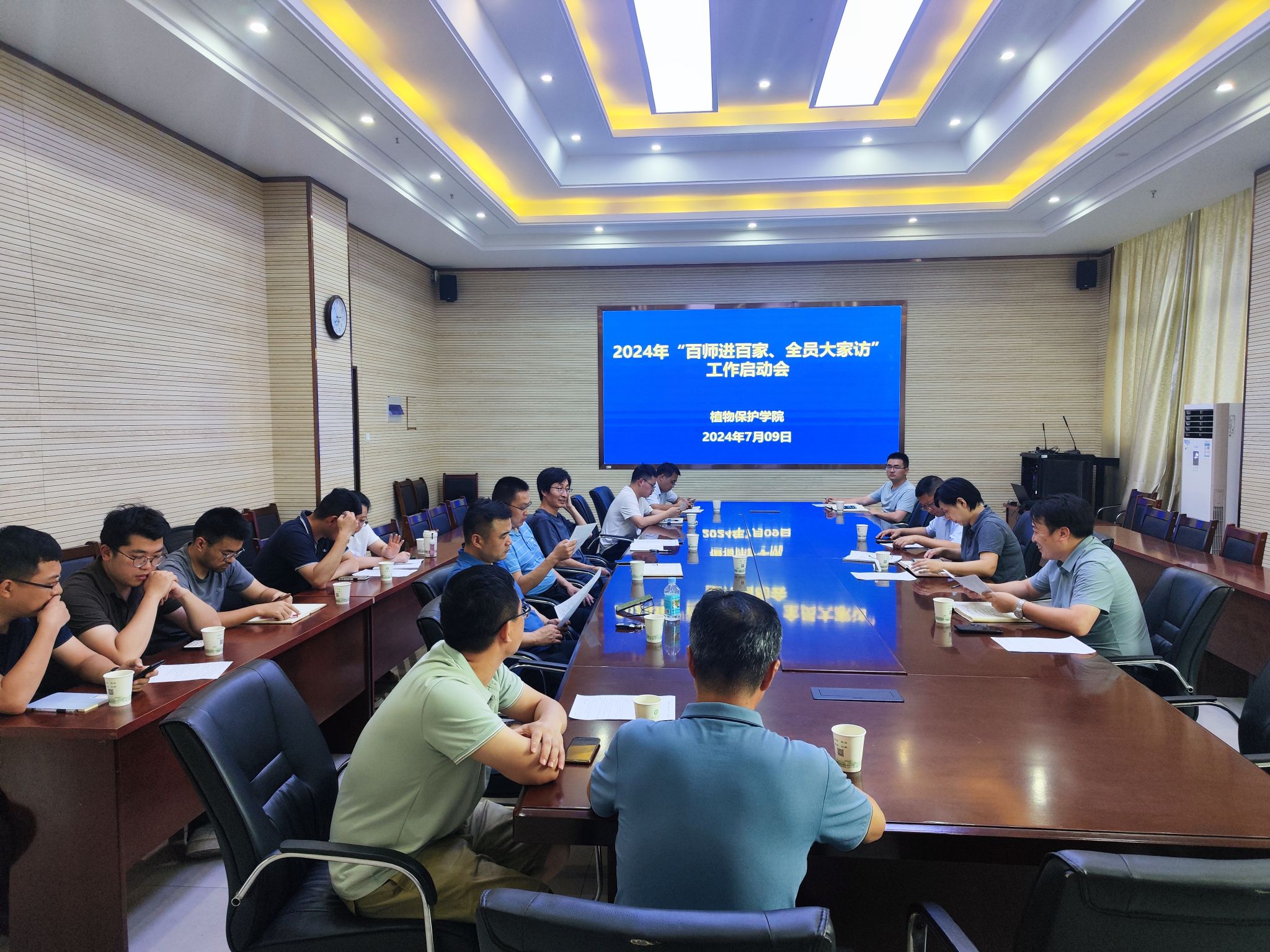 本网讯 7月9日下午,植物保护学院在中西部综合楼1213会议室召开2024年“百师进百家、全员大家访”工作启动会。学院党政领导、生产实习指导老师、专兼职辅导员、管理人员等参加会议。会议由院党委副书记汪小强主持。