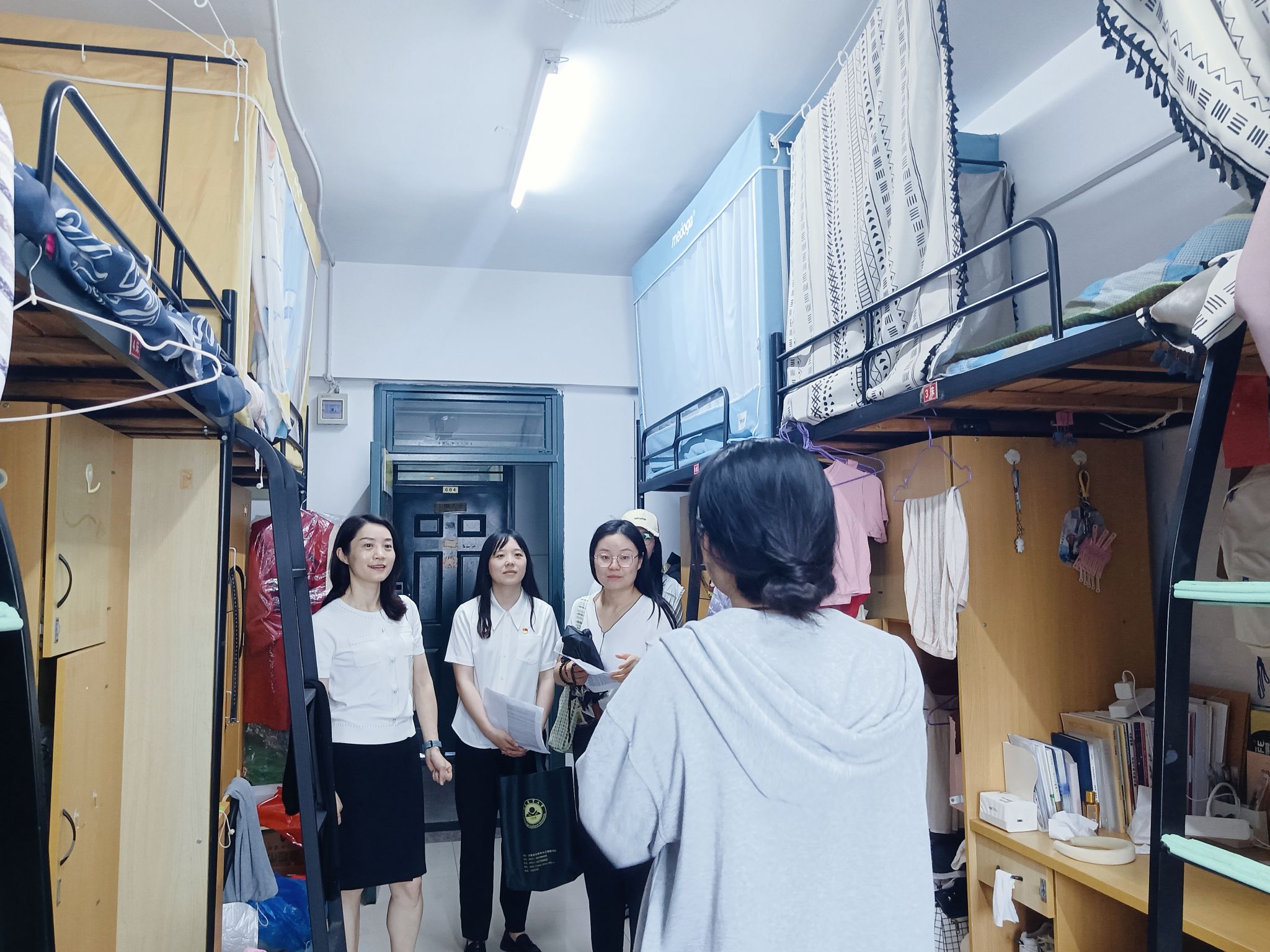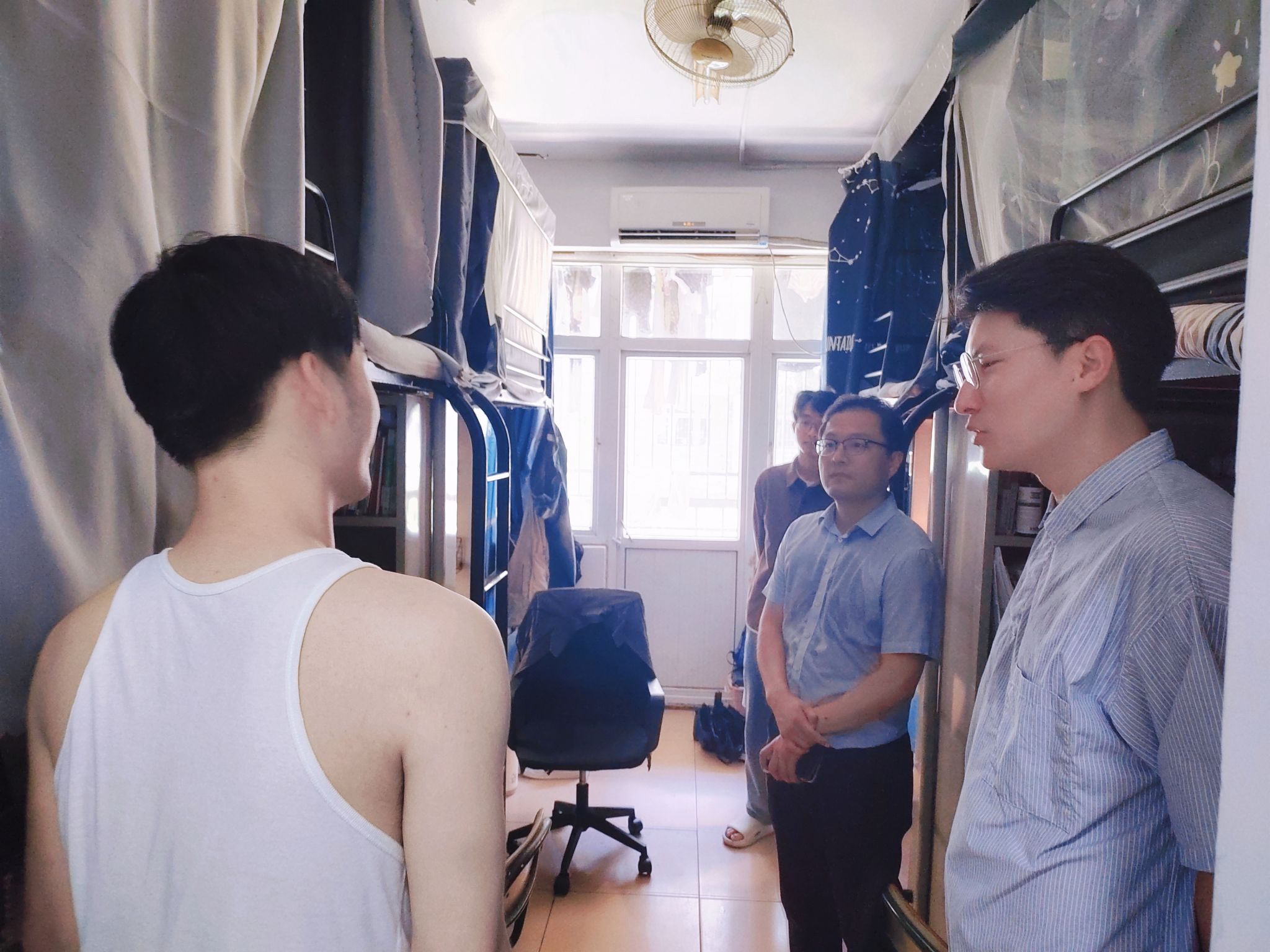 在走访慰问过程中,学院领导仔细询问同学们的学习和生活状况,认真倾听学生需求和心声,并对大家在假期里认真学习、备战考研的刻苦精神给予了充分的肯定和赞扬。与此同时,还特别强调了宿舍安全与卫生的重要性,叮嘱同学们要自觉遵守学校学生管理的规章制度,保持寝室清洁卫生,不要违规使用大功率电器,遇到问题要及时和辅导员或学院反馈。