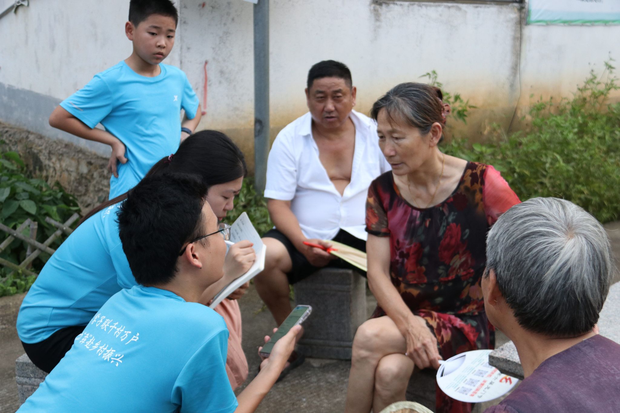 17日上午,实践团带着满腔的热情与责任感,走入痘姆乡仙驾村的村委大院。在村支部书记孙爱华的热情接待下,双方围绕乡村振兴的战略蓝图与创新路径展开了深入交流,孙爱华如数家珍的介绍了有关当地农业生产、基础设施、文化传承等方面的情况,队员们收获颇丰。她强调:“乡村振兴需要全社会共同的努力,特别是需要青年一代积极参与,希望大家学习专业知识,练就过硬本领,助力乡村振兴”。实践团还邀请孙爱华和村名填写了“千村万户大调研”问卷。