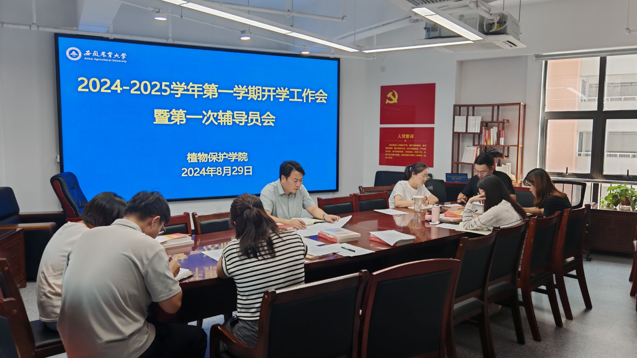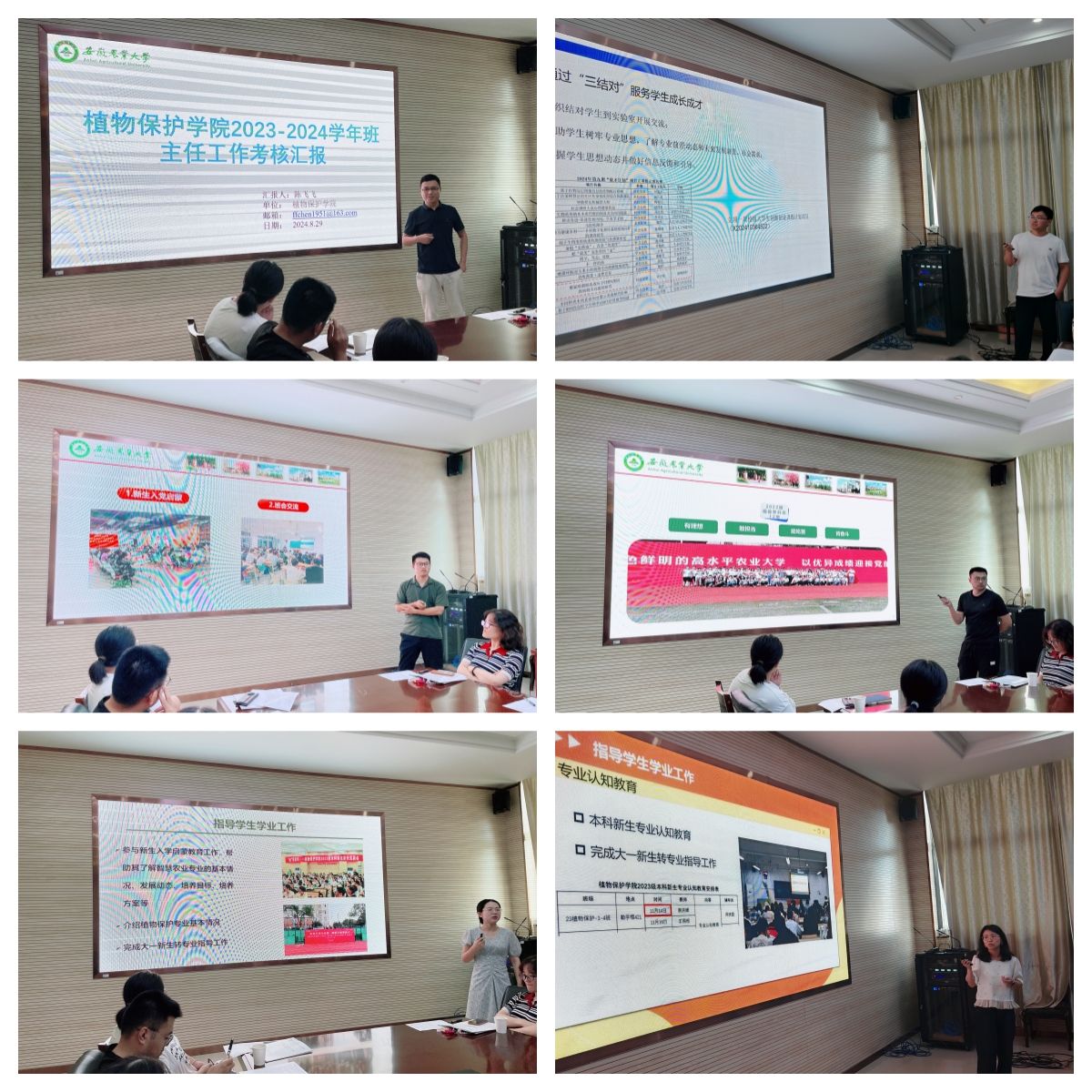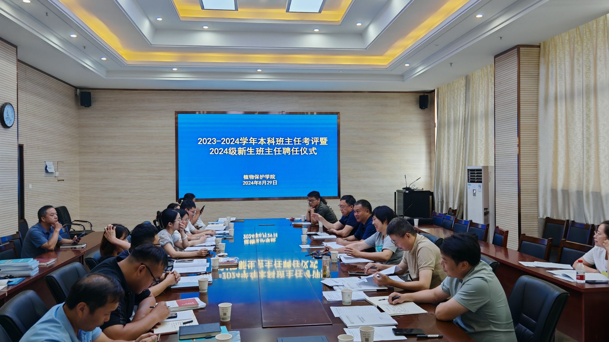 本网讯 8月29日上午,植物保护学院在中西部综合楼1213会议室举办2023-2024学年班主任考评暨新生班主任聘任仪式。学院党政领导、院教学督导组成员、院教授委员会成员,全体辅导员、班主任参加会议。会议由学院党委副书记汪小强主持。