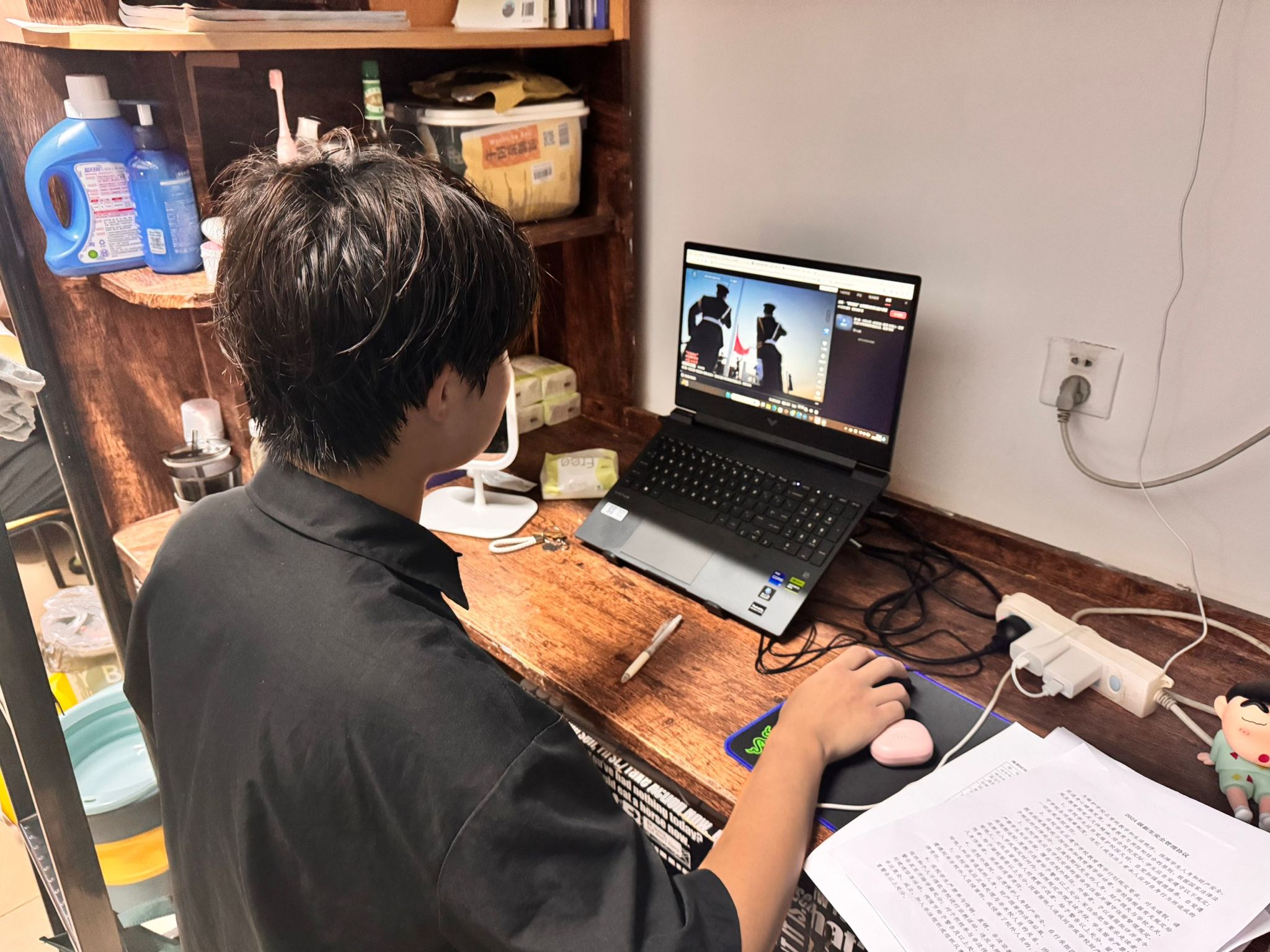 学院各班级学生,通过利用晚自习集中收看和线下宿舍收看的方式,对《国防教育法》《国防法》《兵役法》等进行学习。