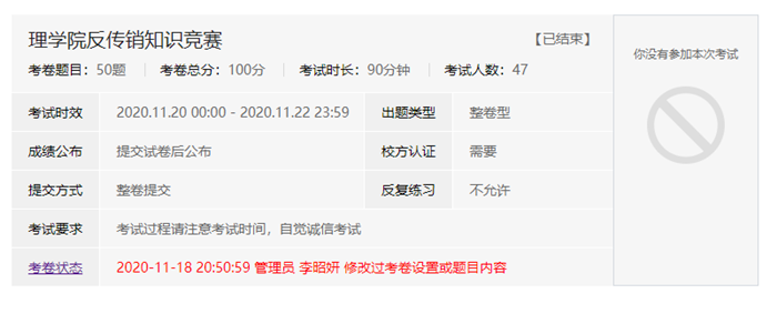 学院团委利用易班知识竞赛平台,举办反传销知识竞答,进一步帮助广大学生提高传销的辨识能力,增强防范意识,自觉远离和抵制传销。