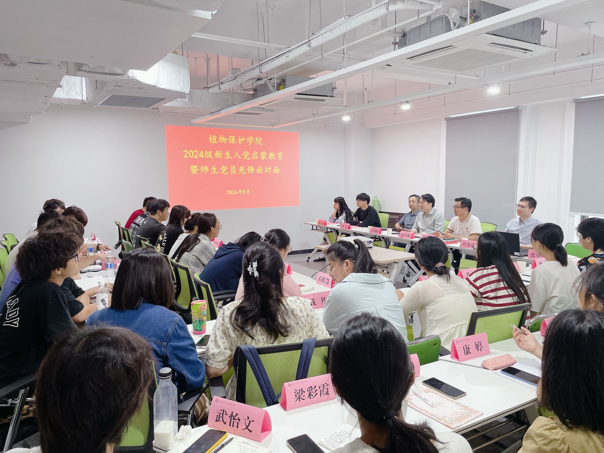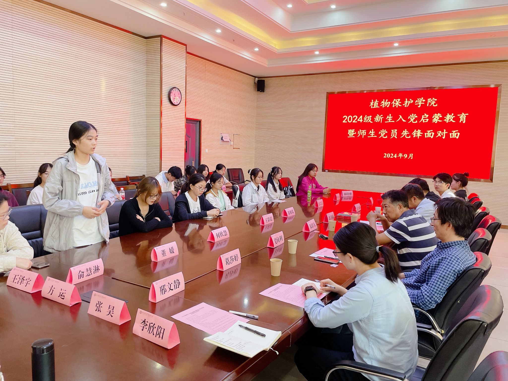新生入党启蒙教育是植物保护学院党性教育“五部曲”中的第一部曲。学院党委坚持“早启蒙、早教育、早引导”,抓住入学关键期,连续多年以班级为单位创新开展新生入党启蒙教育,教育引领广大新生厚植爱农情怀、练就兴农本领,坚定不移听党话、跟党走,奋力书写为中国式现代化挺膺担当的青春篇章。(文/汪小强 邢文静 图/邢文静 编辑/邢文静 预审/汪小强 审核/刘柳)