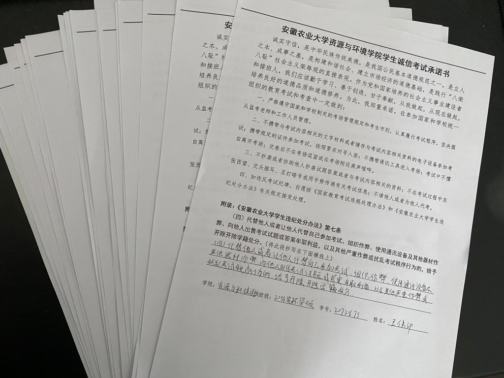 活动最后,同学们签署了《安徽农业大学资源与环境学院考试诚信承诺书》。