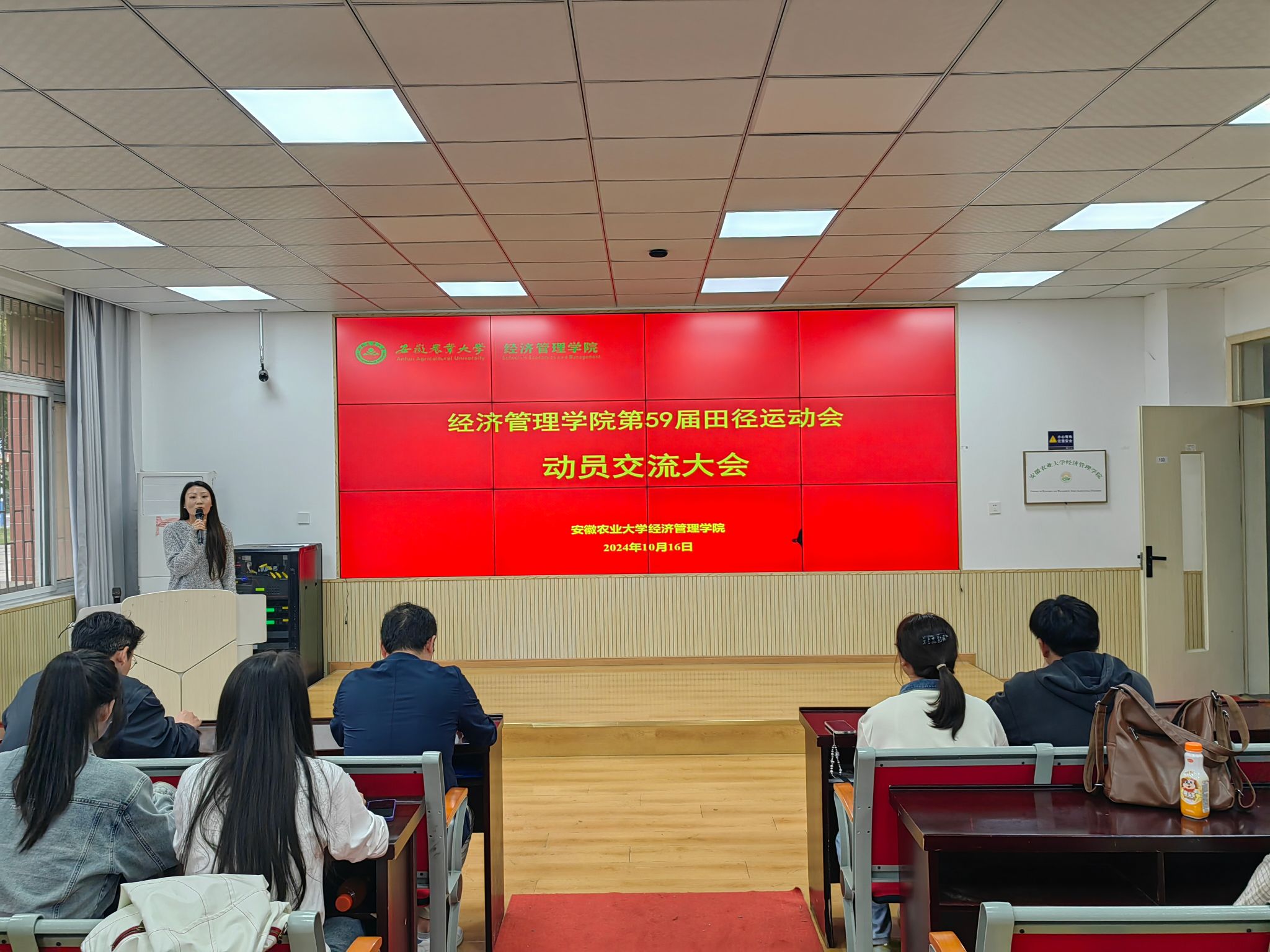 本网讯 秋风起,桂花香,学校即将迎来第五十九届田径运动会,为帮助新生运动员全面了解运动会的基本情况,提升参赛运动员的比赛积极性和集体荣誉感,10月16日中午,经济管理学院第五十九届田径运动会动员交流大会在经管楼103举行,学院党委副书记、纪委书记周涛、团学负责老师及全体运动员参与了此次会议。