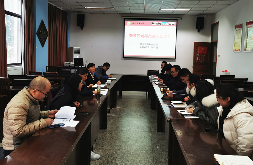 本网讯 12月28日,学院召开2020年度专兼职辅导员述职交流会。院党委书记唐红萍,全体专兼职辅导员参会。会议由院党委副书记、纪委书记、副院长夏业鲍主持。