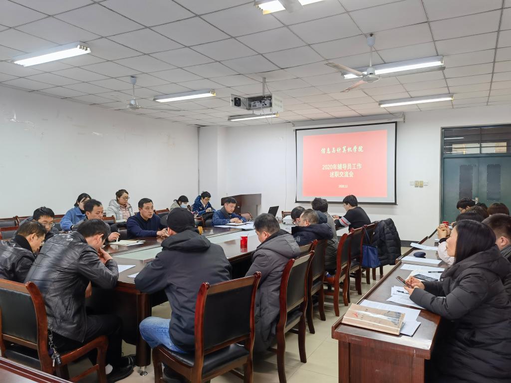 本网讯 12月30日下午,信息与计算机学院在学院406会议室召开2020年度辅导员工作述职暨经验分享交流会。学院党委副书记吕剑秋参加并主持会议,全院全体专兼职辅导员参加述职并就相关工作进行交流。